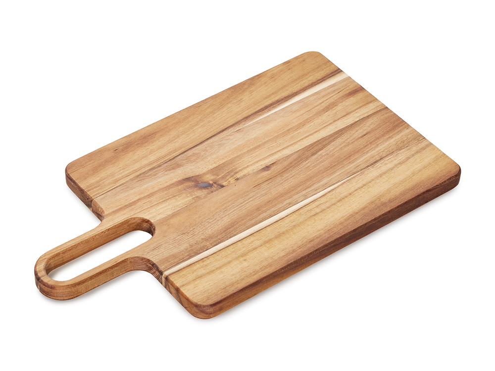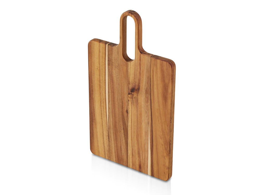 Разделочная доска Вэй выполнена из массива акации — прочного и влагостойкого материала, который устойчив к появлению царапин и деформации. Благодаря плотной структуре древесина не впитывает запахи и соки продуктов, что делает доску гигиеничной и безопасной в использовании. Благодаря удлиненной ручке доска удобно лежит в руке, а большое отверстие позволяет с легкостью повесить доску на крючок для хранения.