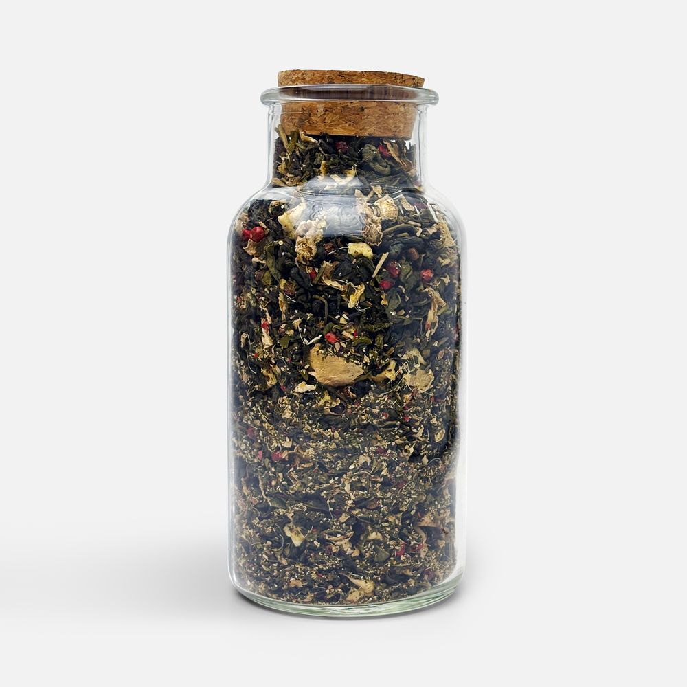 Зеленый крупнолистовой чай с соком имбиря, яблоком, гвоздикой и розовым перцем обладает многогранной палитрой вкуса и аромата. В состав чая входят только натуральные ингредиенты, а чайные листья предварительно вымачиваются в имбирном соке: вкус напитка становится особо насыщенным и обогащенным. «Сокочай» станет прекрасным подарком для любителей необычных вкусовых сочетаний и здорового образа жизни.