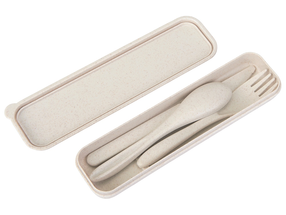 Набор столовых приборов Ron состоит из вилки, ножа и ложки. Они хранятся в удобном боксе, выполненном в едином стиле и цвете. Все приборы изготовлены на 50 % из бамбукового волокна и на 50 % - из полипропилена. Этот компактный и стильный набор удобно брать с собой на работу, в путешествие или на пикник.