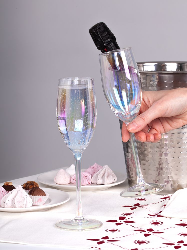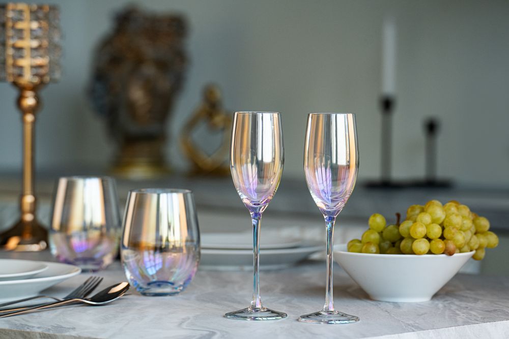 Бокалы для шампанского с перламутровым напылением Perola привлекают внимание своим изысканным дизайном. Переливающиеся разными цветами, бокалы зачаровывают и притягивают взгляды.