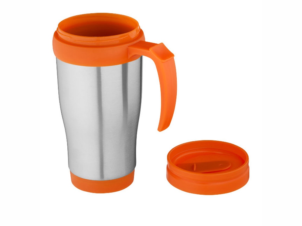 Термокружка Sanibel. Кружка с двойными стенками со съемной крышкой и открывающимся отверстием для питья. Объем – 330 мл. Наружная поверхность из нержавеющей стали, внутренняя поверхность из пластика. Без БФА.