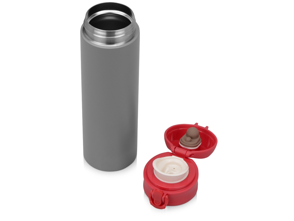 Термокружка Хот объемом 470 мл имеет двухстенную конструкцию из нержавеющей стали и крышку из пластика. Она сохранит температуру любого вашего напитка в течение 6 часов. Крышка надежно фиксируется с помощью кнопки. Также емкость для питья оснащена специальной мягкой удобной поилкой, которая не даст напитку пролиться. Благодаря своей универсальности термокружку можно использовать, как в офисе, так и дома.