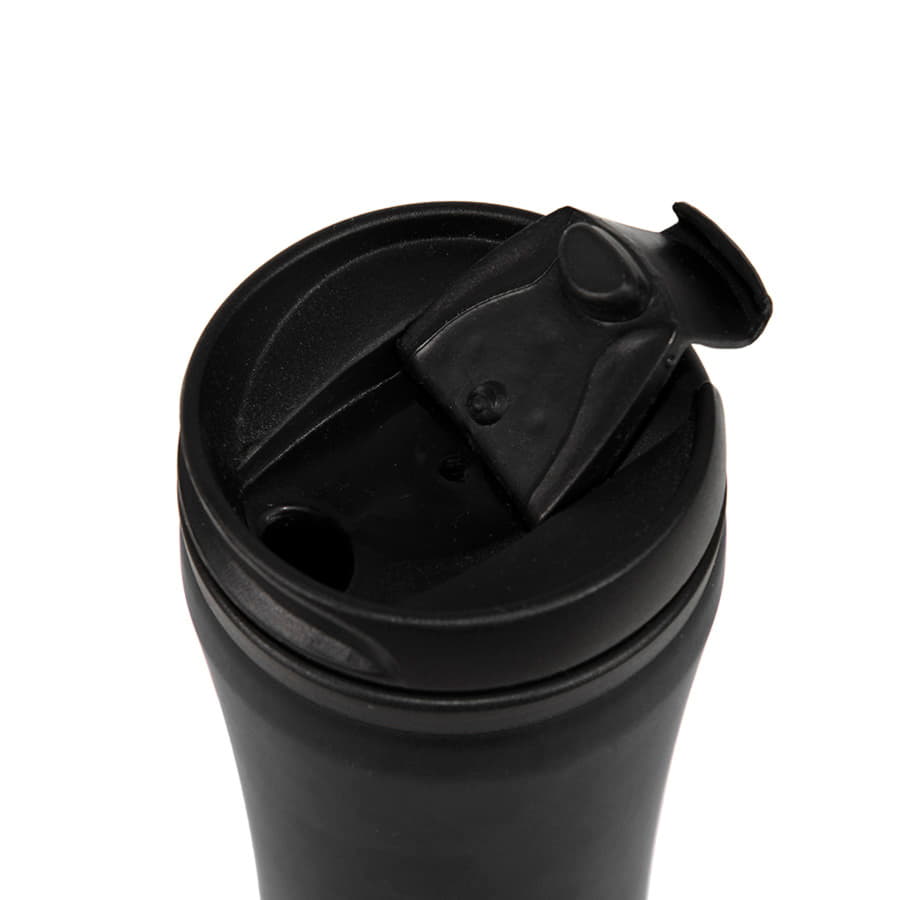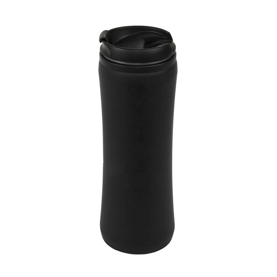 Термокружка FLOCK с пластиковой внутренней колбой и внешней металлической с покрытием soft-touch сохраняет напиток горячим до 3х часов.