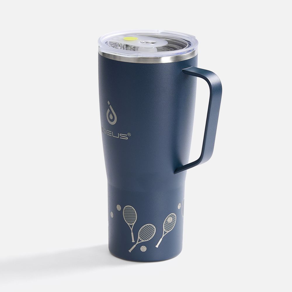 - 2 крышки в комплекте: одна на 100% герметичная с механизмом блокировки отверстия для питья, вторая — с отверстием для трубочки