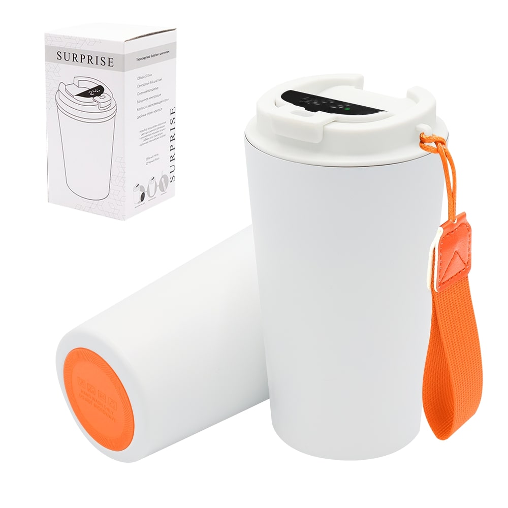 Термокружка Surprise To Go с дисплеем выполнена из пищевой нержавеющей стали. Имеет двойные стенки с вакуумной изоляцией, а крышка изготовлена из пищевого безопасного для человека пластика. Термокружка Surprise To Go не только сохраняет ваши напитки горячими, но и показывает температуру напитка! Уникальная особенность данной термокружки – наличие сенсорного индикатора температуры, расположенного в крышке. Чтобы узнать температуру напитка внутри кружки, достаточно прикоснуться к поверхности крышки. Работает от 1 батарейки типа CR2032 (в комплекте), которую в последующем можно самостоятельно заменить.
