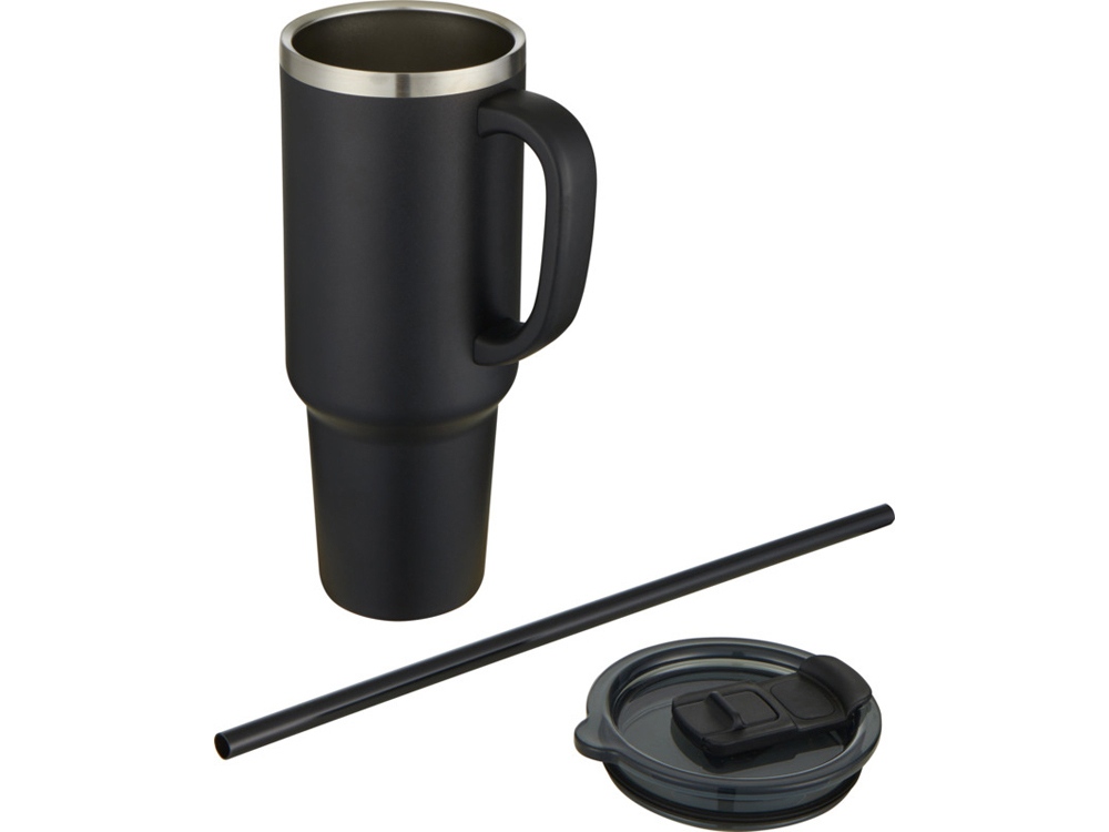 Кружка с двойными стенками из меди, сертифицированной RCS, и вакуумной изоляцией, изготовлена из нержавеющей стали, 91% которой подверглось вторичной переработке, сохраняет напитки холодными в течение как минимум 24 часов. Имеет соломинку Tritan и функцию слайдера крышки для предотвращения проливания. Прижимная поворотная крышка из 100% переработанного пластика надежно удерживает соломинку на месте и может легко поворачиваться, открывая отверстие для напитка. Прочное внешнее порошковое покрытие. Объем: 1200 мл. Только ручная мойка. Recycled stainless steel.