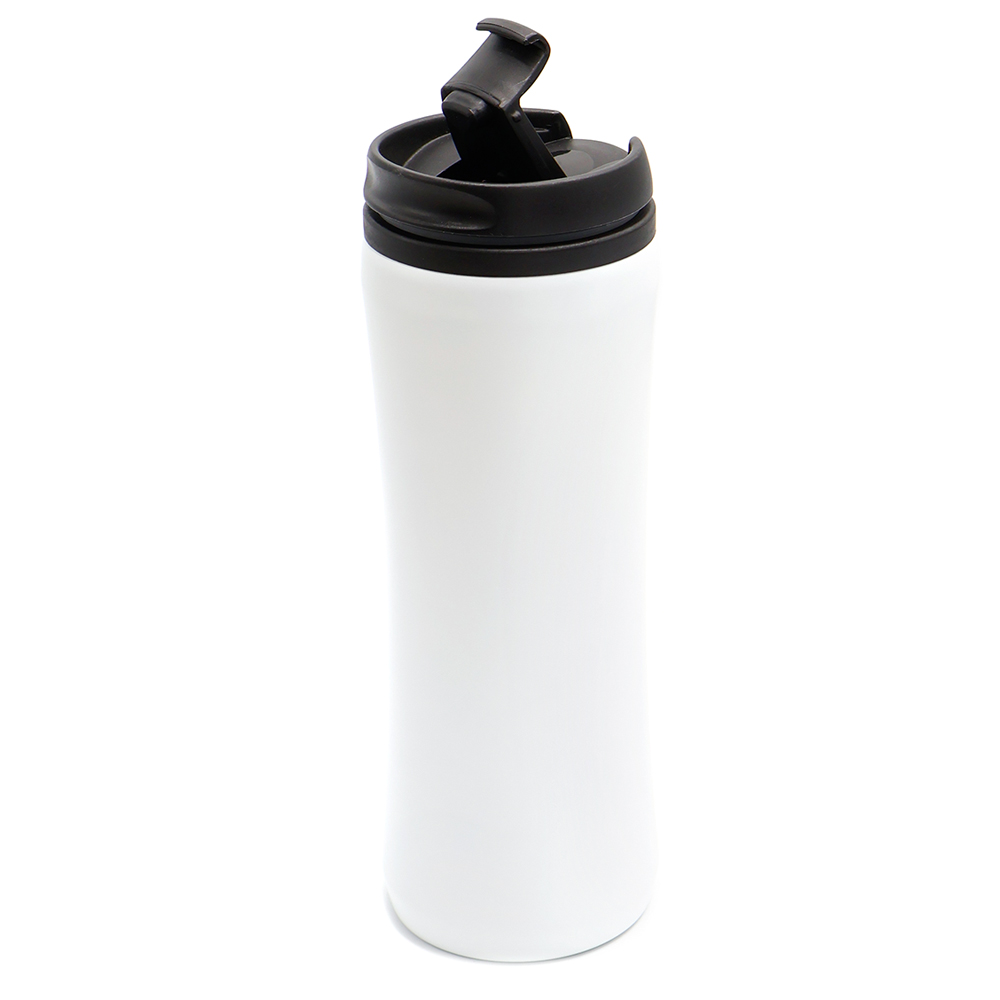 Термокружка изготовлена из нержавеющей стали с матовым покрытием. Внутренняя колба сделана из пластика. Вакуумная конструкция. Откидной клапан позволяет пить, не снимая крышку, что помогает дольше сохранить начальную температуру напитка. Объем термокружки – 500 мл.