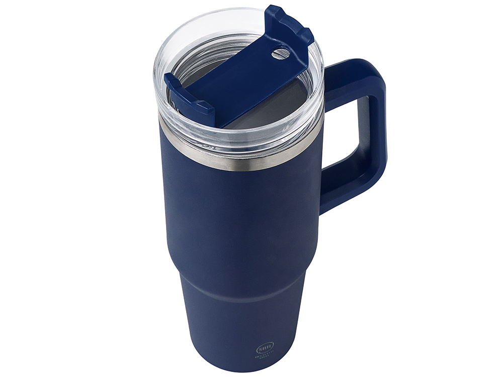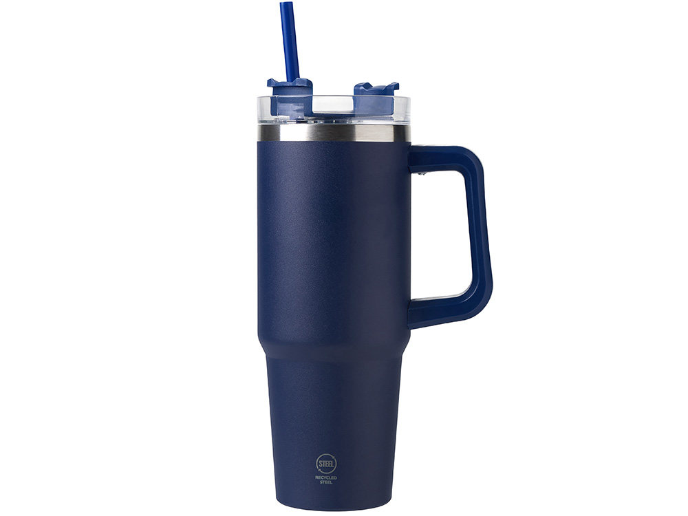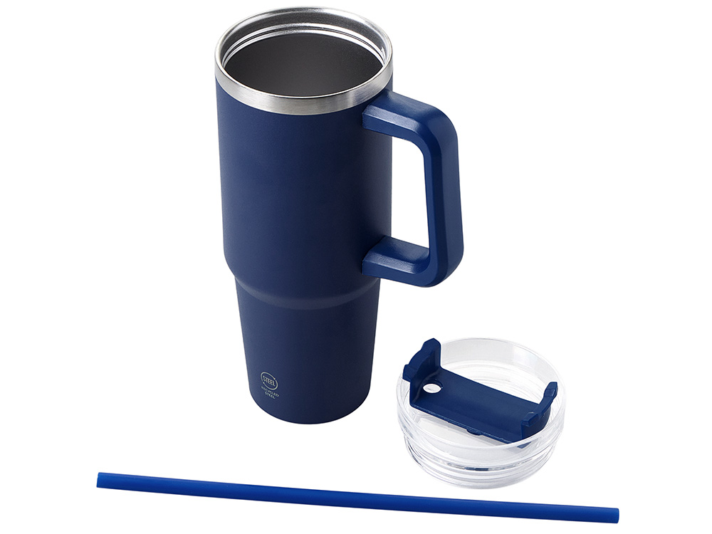 Двухстеночная термокружка из переработанной нержавеющей стали 304. Крышка с трубочкой и винтовой системой закрытия. Объём: 850 мл. Поставляется в дизайнерской коробке.