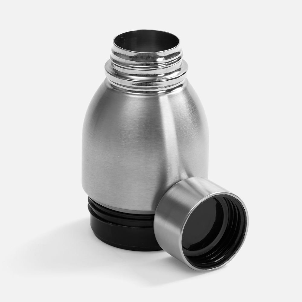 Varianti — это яркий пример посуды с двойной функциональностью. Один и тот же корпус можно превратить как в термостакан для чая и кофе с пластиковой крышкой, так и в термобутылку для прохладительных напитков — с крышкой стальной.