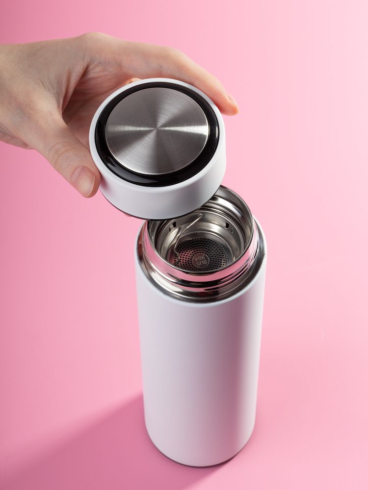 Компактный термос Percola пригодится и в городе, и на природе. Съемное ситечко поможет заварить чистую чашку чая или кофе, а цилиндрический корпус даст широкие возможности для маркетинговых сообщений.