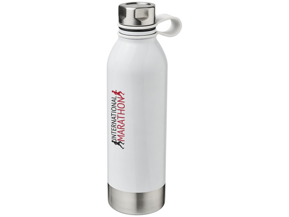 Спортивная бутылка из нержавеющей стали Perth объемом 740 мл. Одностенная конструкция из нержавеющей стали. Оснащена закручивающимся колпачком и крышкой из нержавеющей стали с удобной силиконовой петлей-держателем. Объем — 740 мл. Нержавеющая сталь.