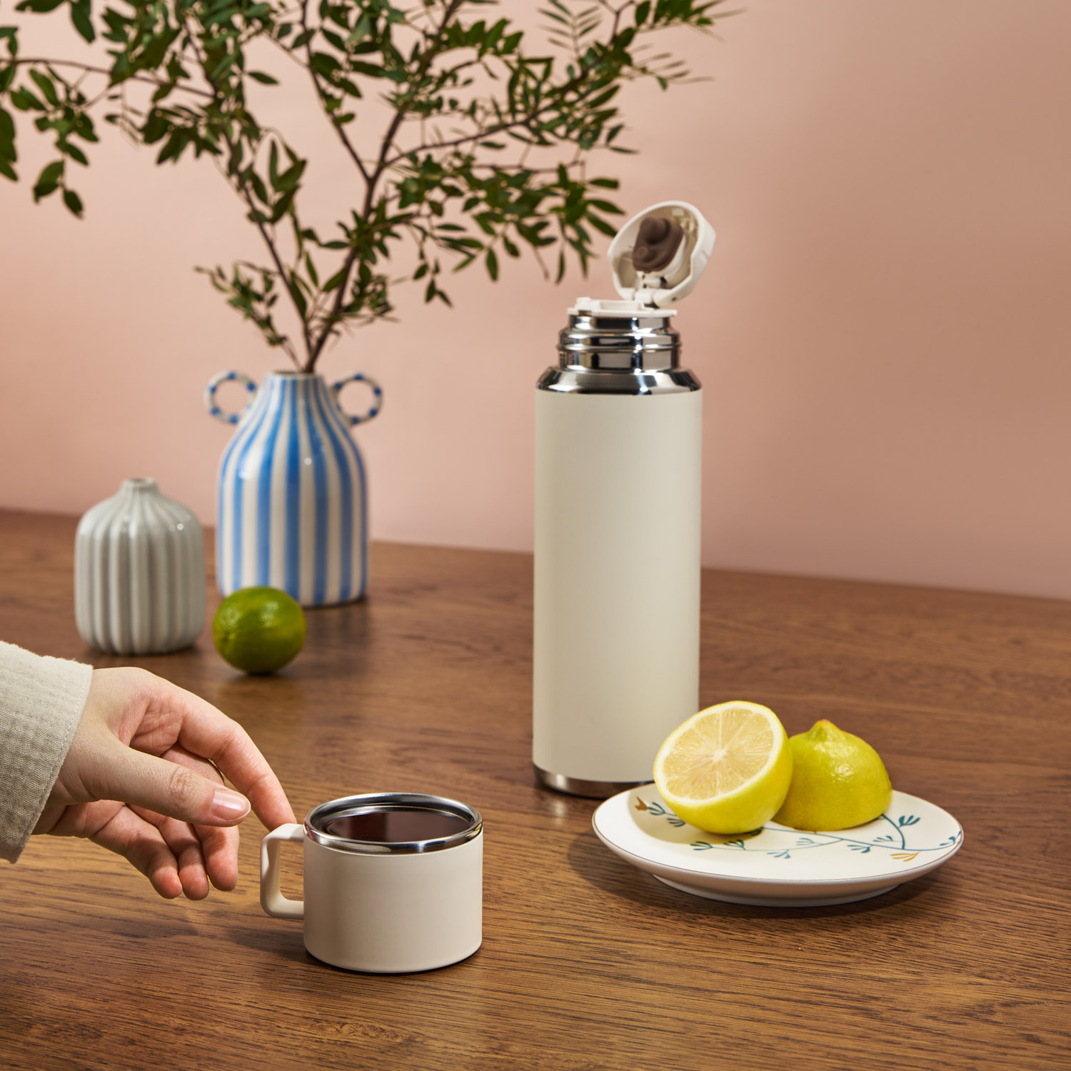 Все элементы изготовлены из безопасных материалов BPA free (не содержит Бисфенол А), а вакуумная конструкция надолго сохраняет температуру напитка.