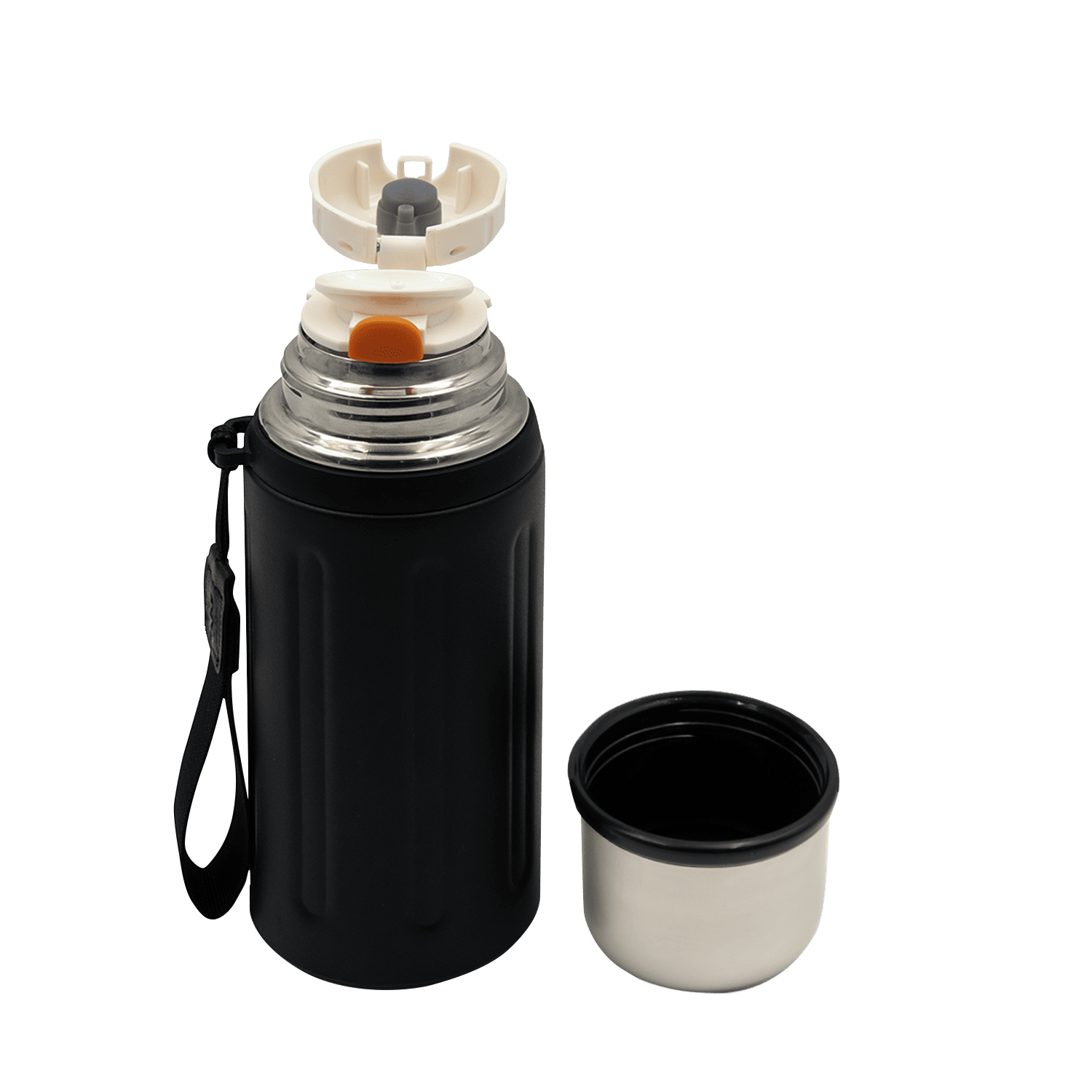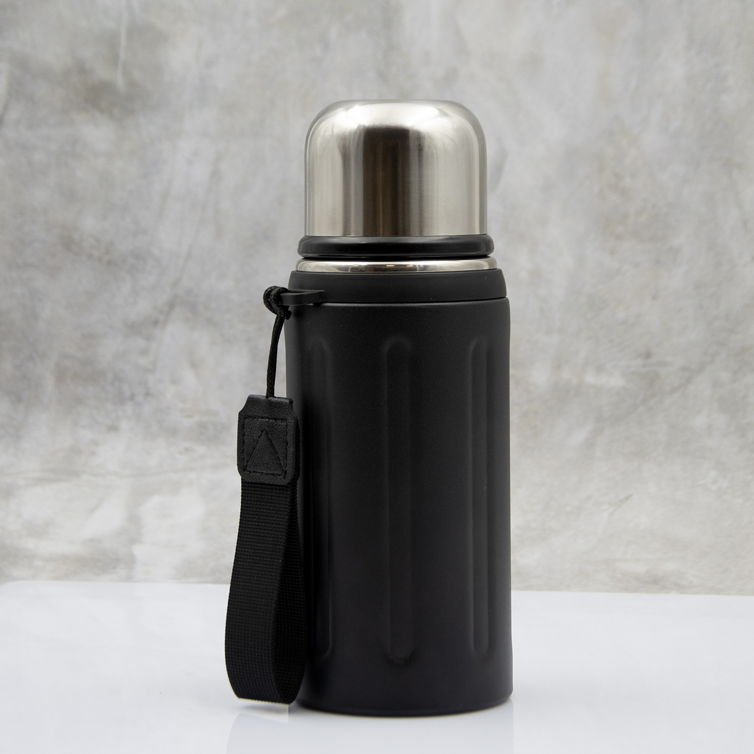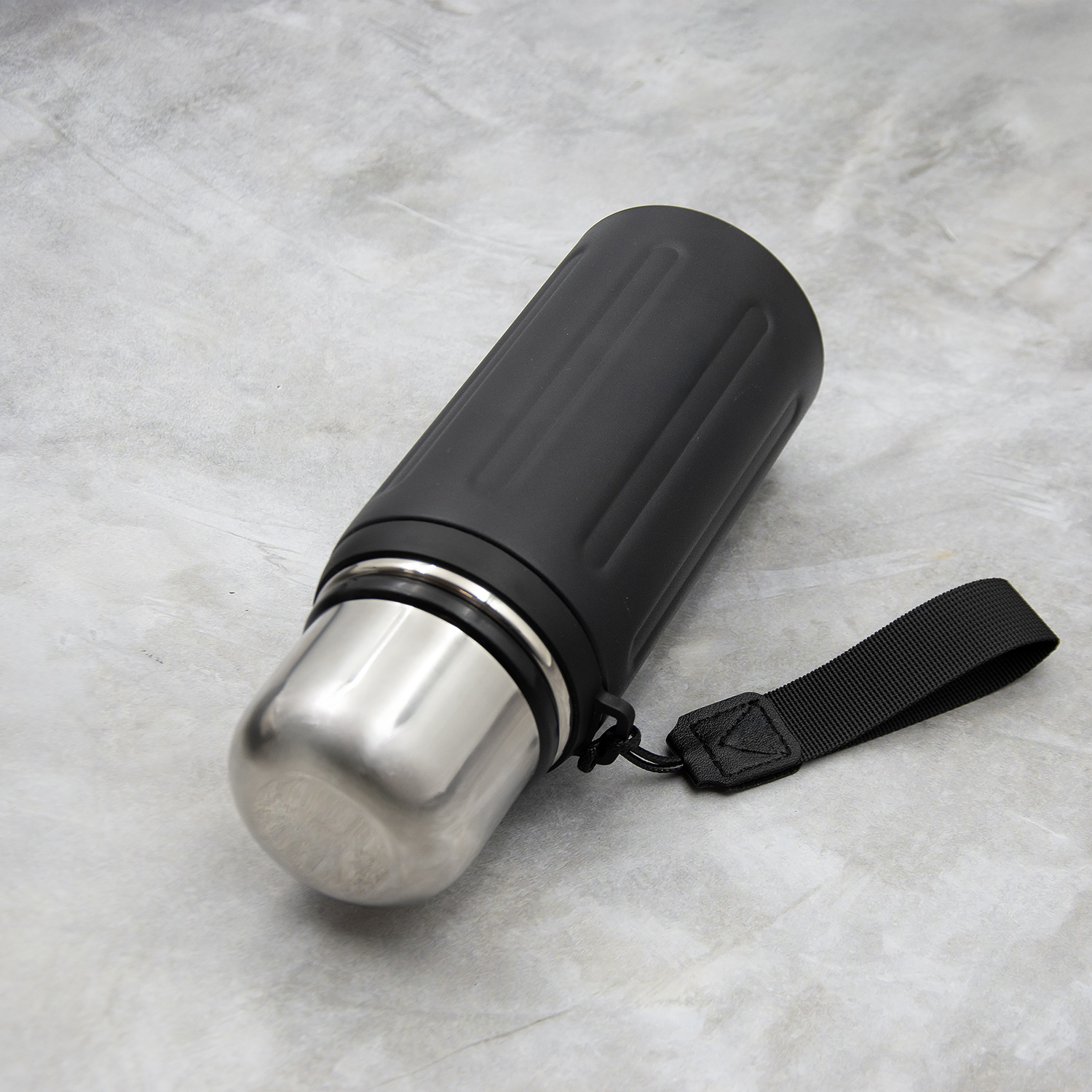 Съемный ремешок термоса сделает переноску удобной и комфортной.