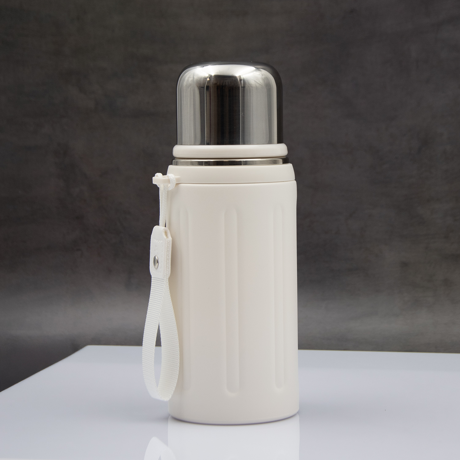 Съемный ремешок термоса сделает переноску удобной и комфортной.