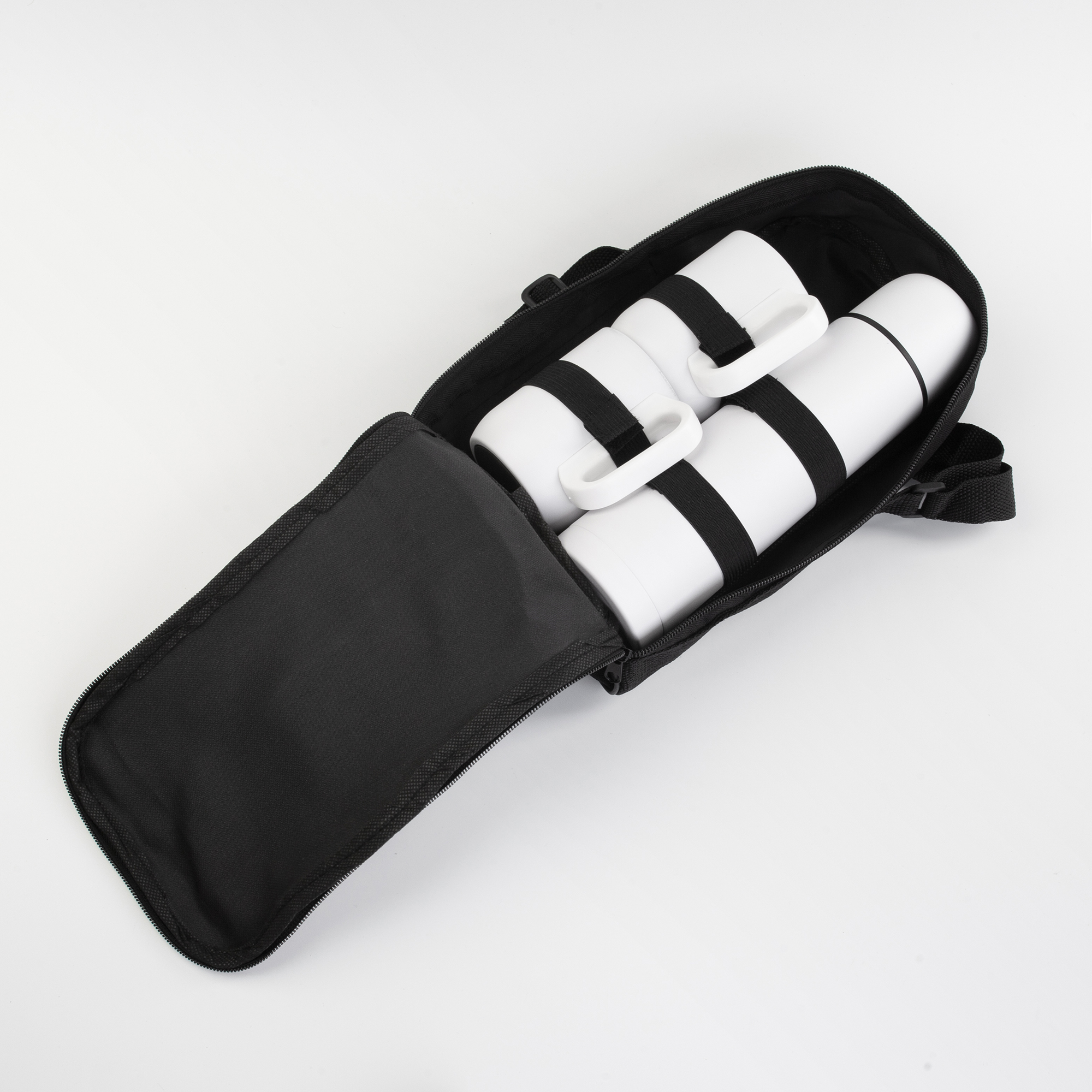 Набор изготовлен из пищевой нержавеющей стали с защитным покрытием powder (пудра - порошковая краска). Сумка-чехол с регулируемым ремешком дополнительно сохранит температуру, защитит набор от внешних неблагоприятных факторов и сделает вид более презентабельным. Набор «Гейзер» обладает широкими возможностями персонализации на сумке-чехле, термосе и кружках. Гармоничный дизайн набора «Гейзер» и его функциональность приятно удивят получателя.