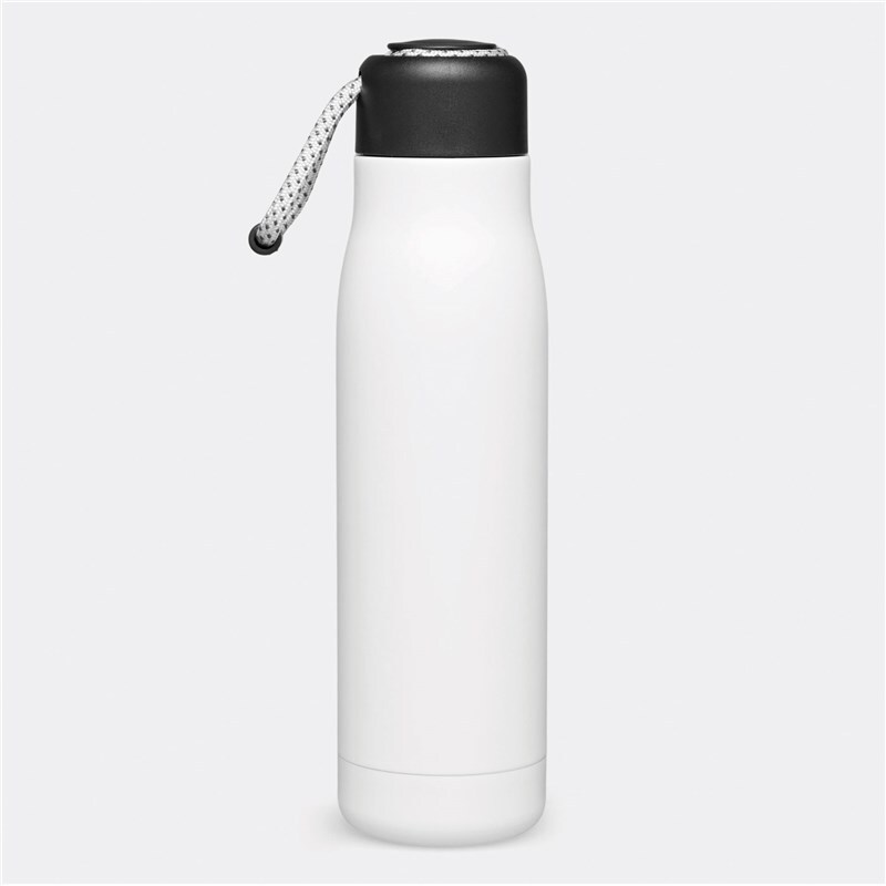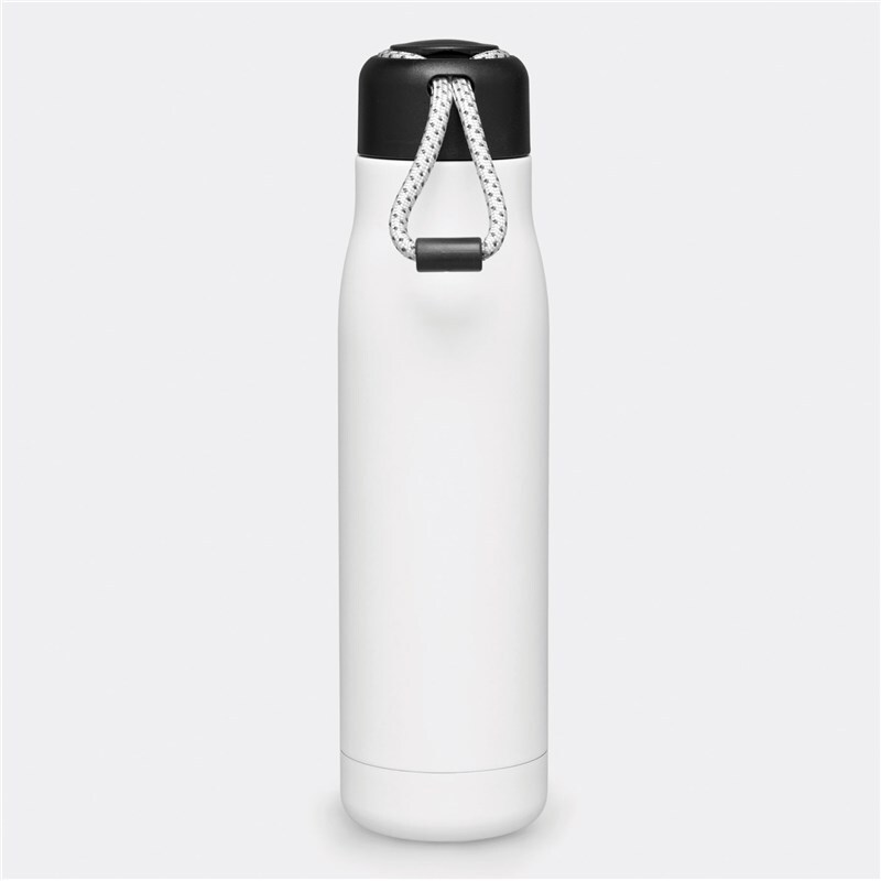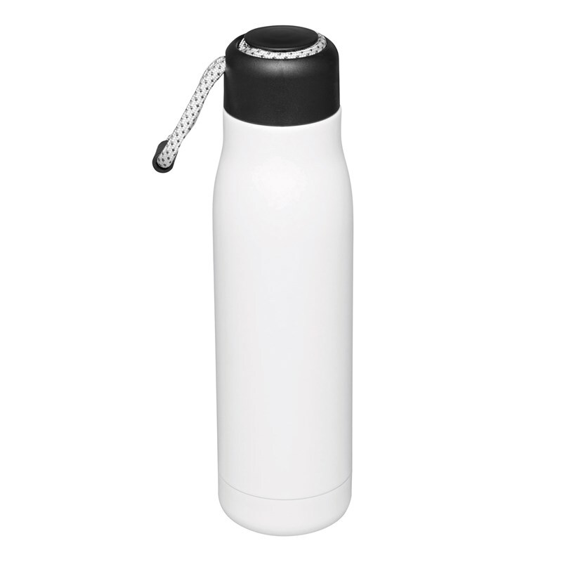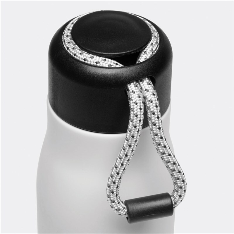 Вакуумная бутылка для питья ROBUSTA, с двойными стенками: внутри и снаружи из нержавеющей стали, завинчивающаяся черная крышка с декоративным ремнем для переноски, емкость: ок. 500 мл, сохраняет тепло ок. 8 часов и холод до 12 часов.