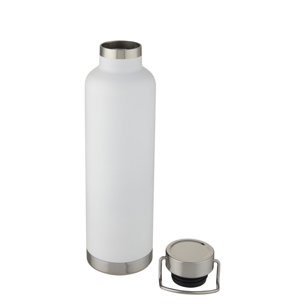 Большая спортивная бутылка с двойной стенкой и вакуумной конструкцией из нержавеющей стали 18/8 и медной изоляцией, которая сохраняет напитки горячими или холодными в течение нескольких часов. Конструкция также предотвращает образование конденсата на внешней стороне бутылки, а модное порошковое покрытие делает ее чрезвычайно прочной. Навинчивающаяся герметичная крышка из нержавеющей стали с прочной, выполненной из нержавеющей стали, петлей для руки. Широкое отверстие для легкого заполнения, разливания и очистки. Не содержит БФА, испытана и одобрена в соответствии с немецким законодательством о безопасности пищевых продуктов (LFGB). Проверена на содержание фталатов и одобрена для использования в соответствии с правилами REACH. Идеально подходит для кубиков льда. Объем 1 л. Рекомендуется мыть вручную. В подарочной коробке из переработанного картона.