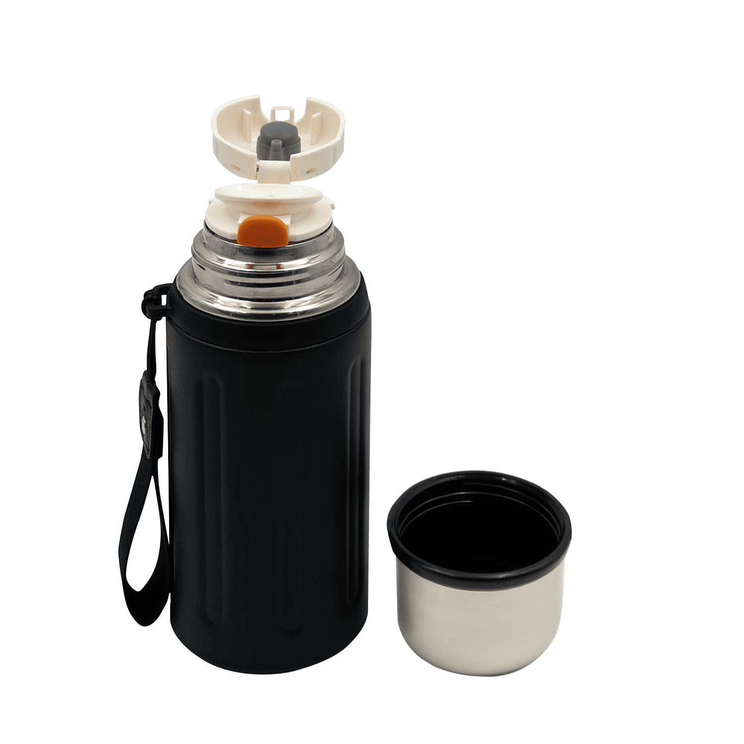 Объем в 600 мл позволит взять с собой достаточно напитка, будь то горячий кофе, ароматный чай или освежающий холодный сок. Крышка термоса является важной частью функциональности и удобства использования. Она состоит из двух частей: крышки-чашки и крышки с клапаном. Обе они имеют завинчивающийся механизм, который обеспечивает надежную герметичность. Крышка-чашка имеет емкость 100мл и предназначена для самостоятельного питья: в нее удобно наливать напиток и держать в руках. Съемный ремешок термоса сделает переноску удобной и комфортной.