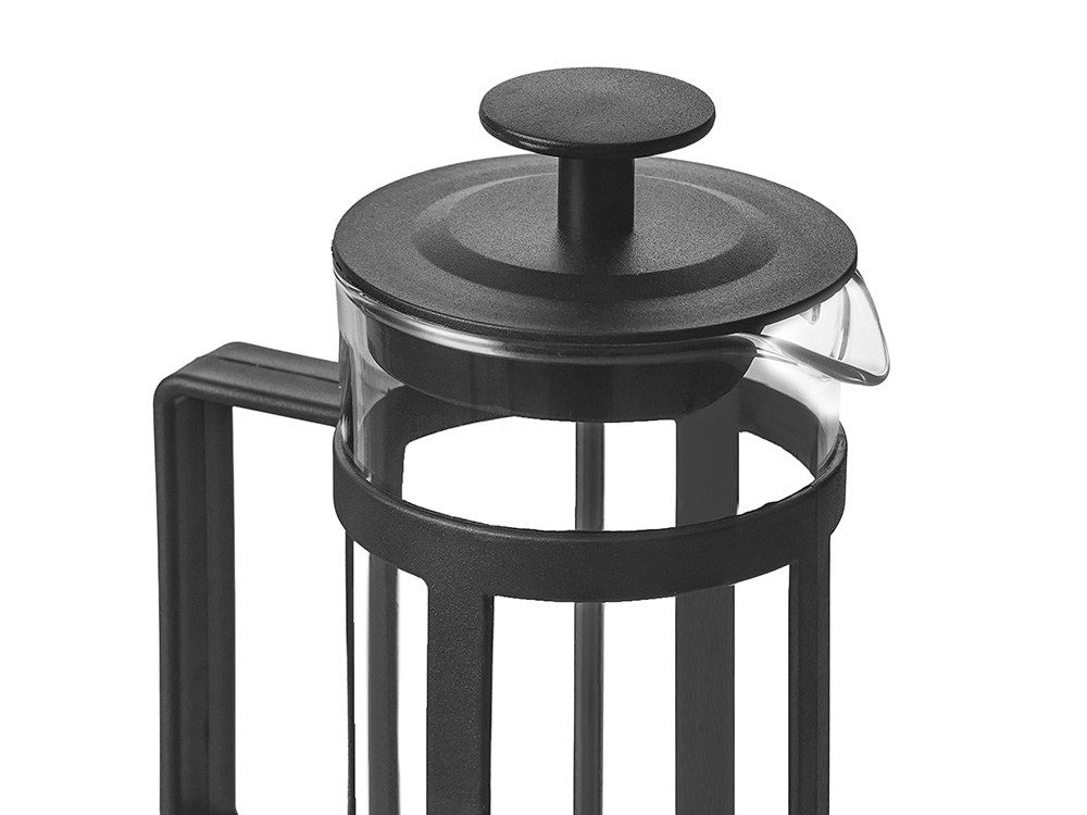 Этот кухонный прибор имеет плотно прилегающую пластиковую крышку, поршень из нержавеющей стали и пресс-фильтр с уплотнительным кольцом из пластика для отделения чайных листьев от воды.