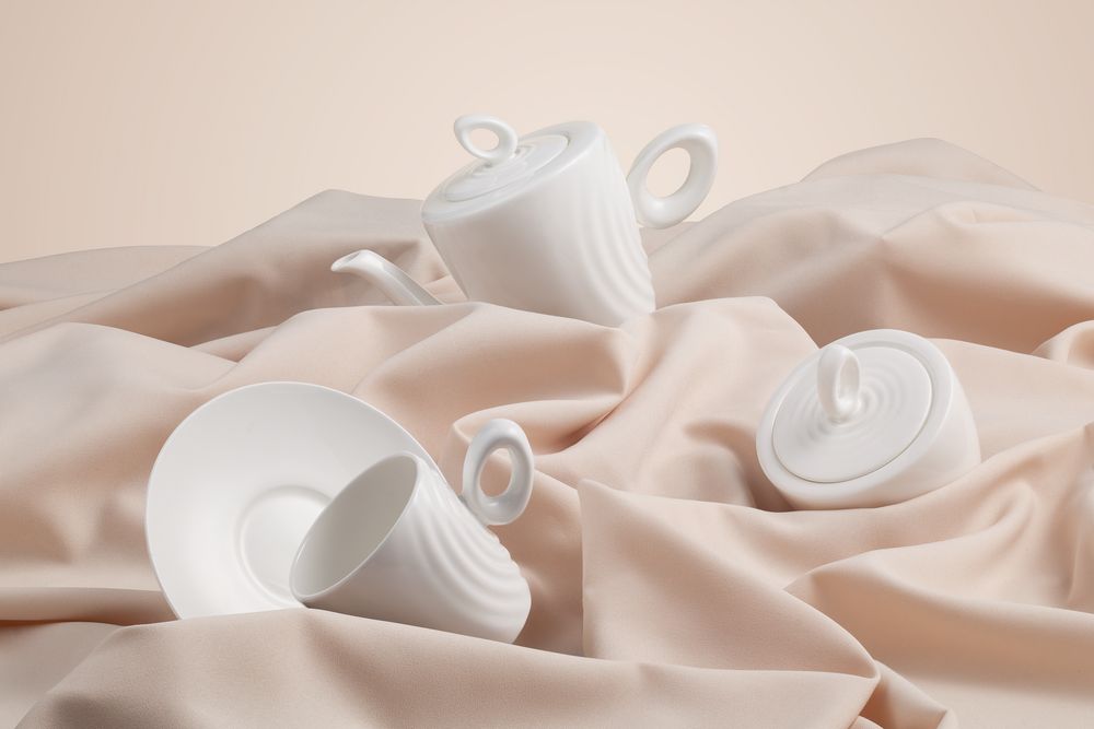 Посуда выполнена из костяного фарфора, что делает ее необычайно легкой и прочной одновременно.При этом благодаря биоморфическим формам кажется, что твердый материал становится мягким и податливым.