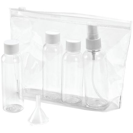 Набор из четырех емкостей для компактной перевозки косметики.