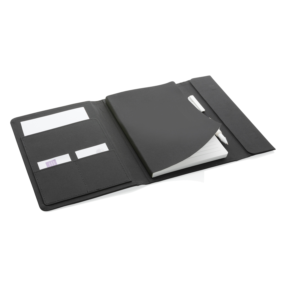 Возьмите на деловую встречу все самое необходимое с этим стильным органайзером Impact формата А5. Внутри есть 1 большой карман, 2 слота для визиток или карт и держатель для ручки. Для записей предусмотрен блокнот: 64 листа/128 страниц линованной бумаги кремового оттенка плотностью 80 г/м2. Органайзер сделан из 100% переработанного полиэстера с маркировкой AWARE™, подтверждающей подлинность вторичных материалов. При производстве каждого изделия мы сэкономили 3,9 л воды и переработали 6,5 пластиковых бутылок. 2% с продаж коллекции Impact будут переданы в благотворительный фонд Water.org. Не содержит ПВХ.