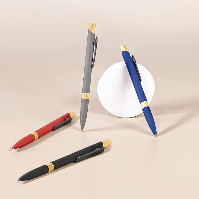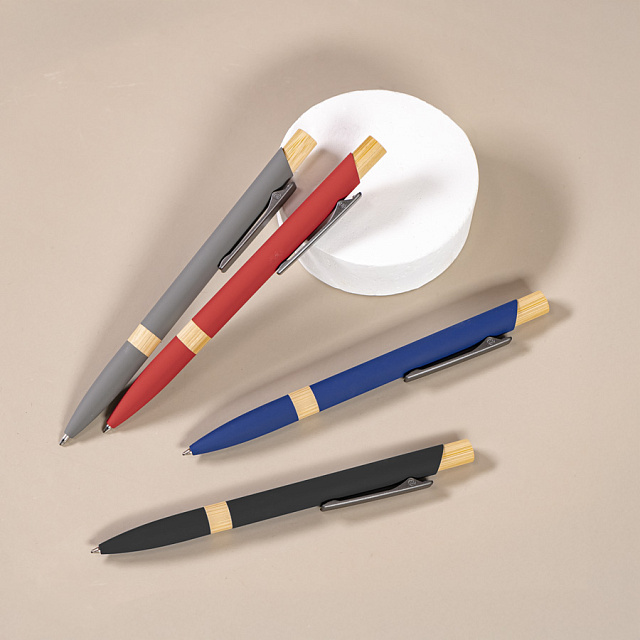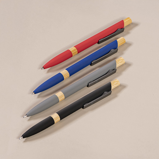 Экстравагантная модель ручки FRESCO. Корпус алюминиевый с матовым покрытием soft touch - ручку приятно держать в руке. Металлический клип-прищепка является эксклюзивом бренда В1. Отделка из натурального бамбука добавляет модели оригинальность. Кнопка нажимного механизма оптимального диаметра удобна для подушечки пальца. Визуально ручка выглядит очень благородно. В использовании гарантированно комфортна.