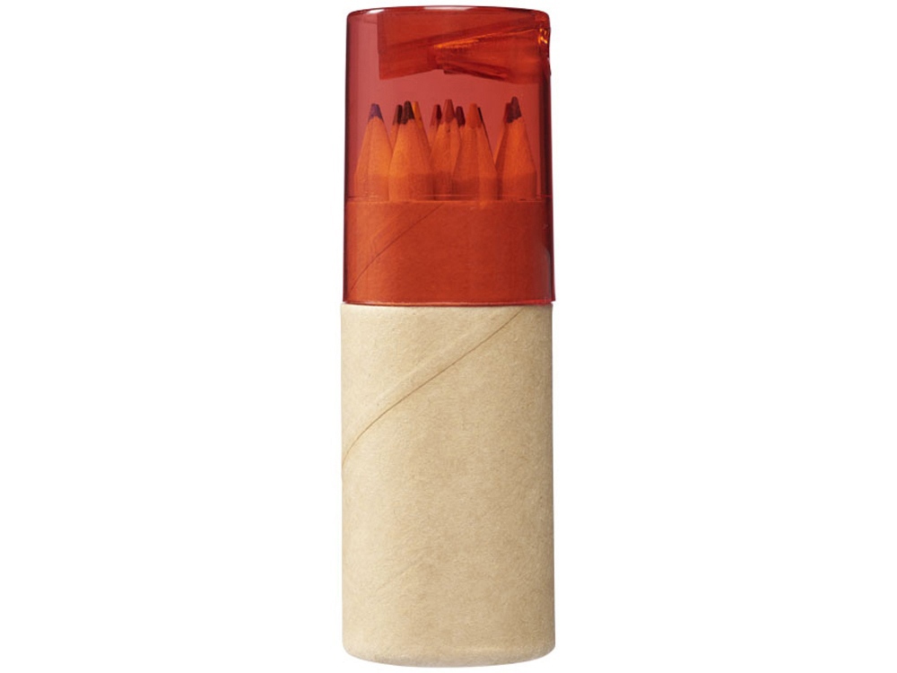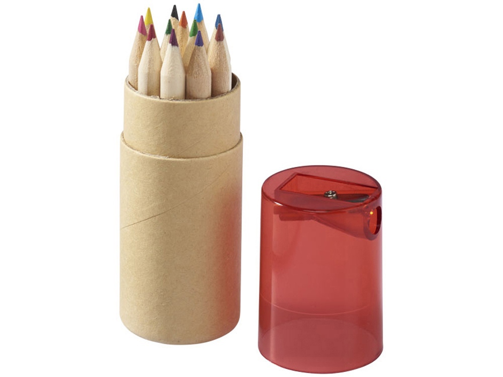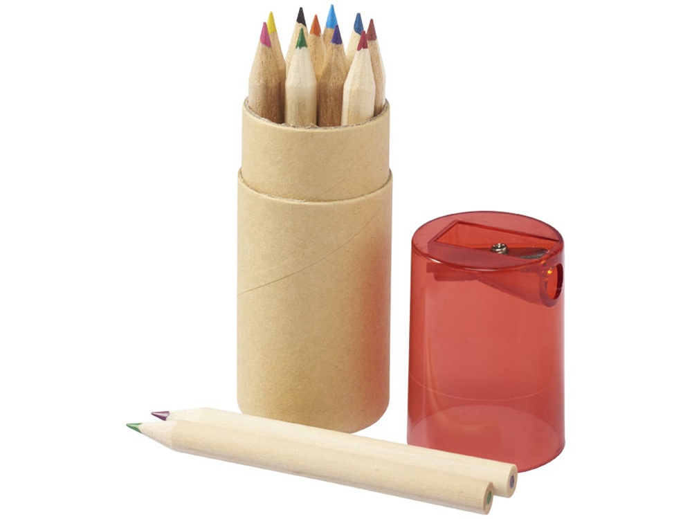 Набор из 12 маленьких карандашей в картонном стакане с точилкой.