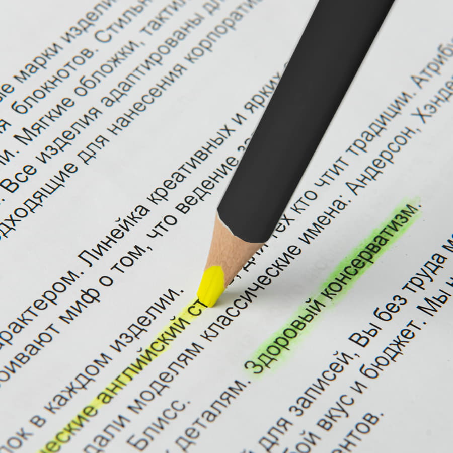 Карандаш-текстовыделитель двухсторонний, двухцветный. Мягкий грифель класса А позволяет легко выделить нужный фрагмент текста. Текстовыделители