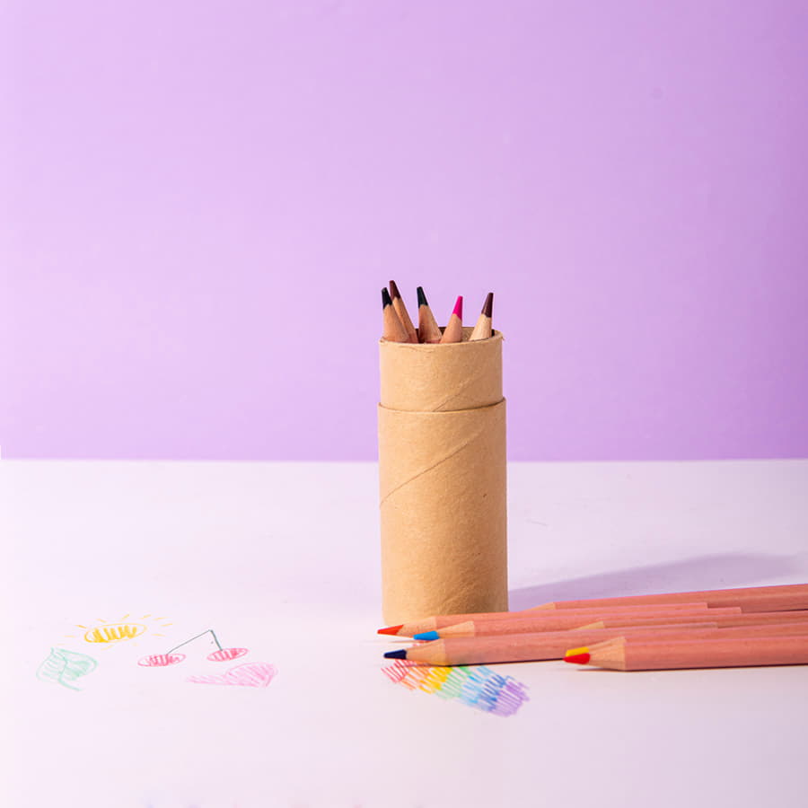 Набор из 12 цветных карандашей MИНИ в крафтовой тубе. Круглый корпус из