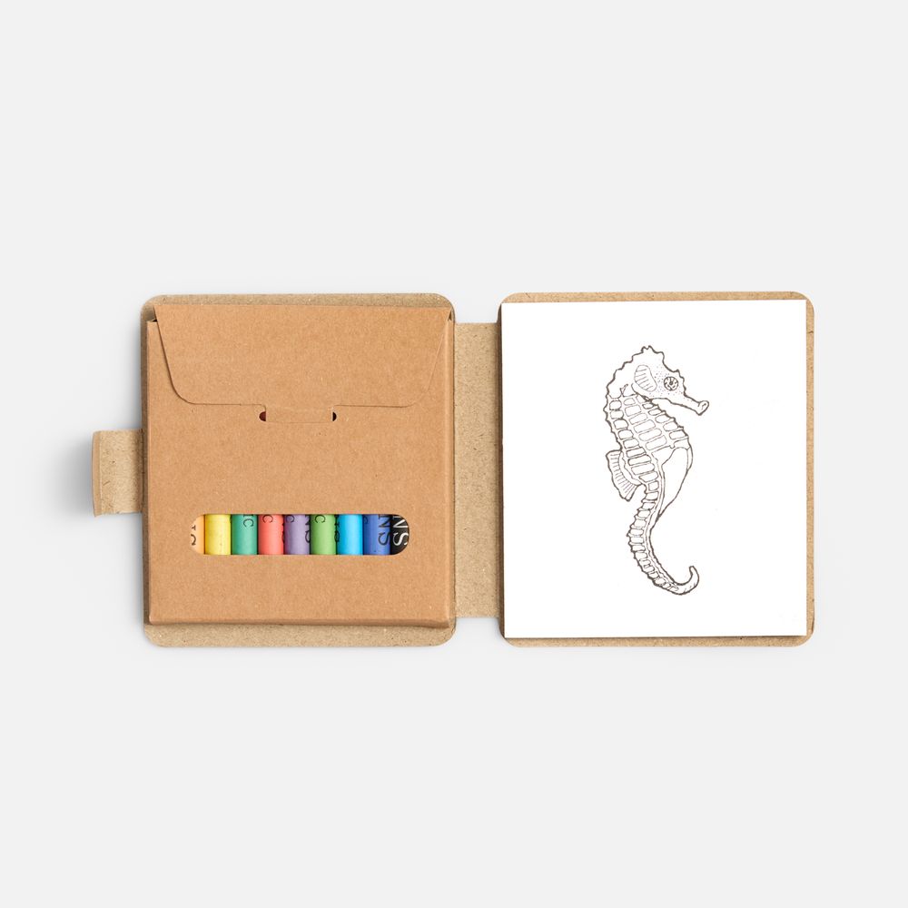 В комплекте 11 цветных восковых мелков и блокнот на 40 страниц для раскрашивания и рисования: 12 страниц с рисунками и 28 чистых страниц. Блокнот и мелки компактно хранятся под одной обложкой.