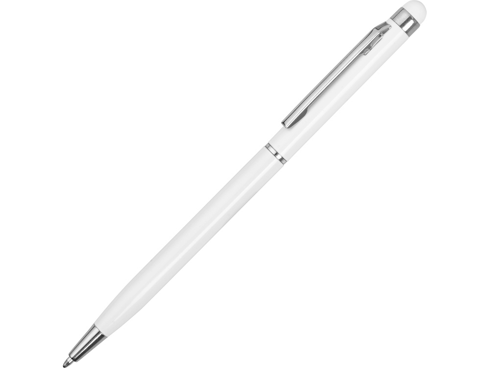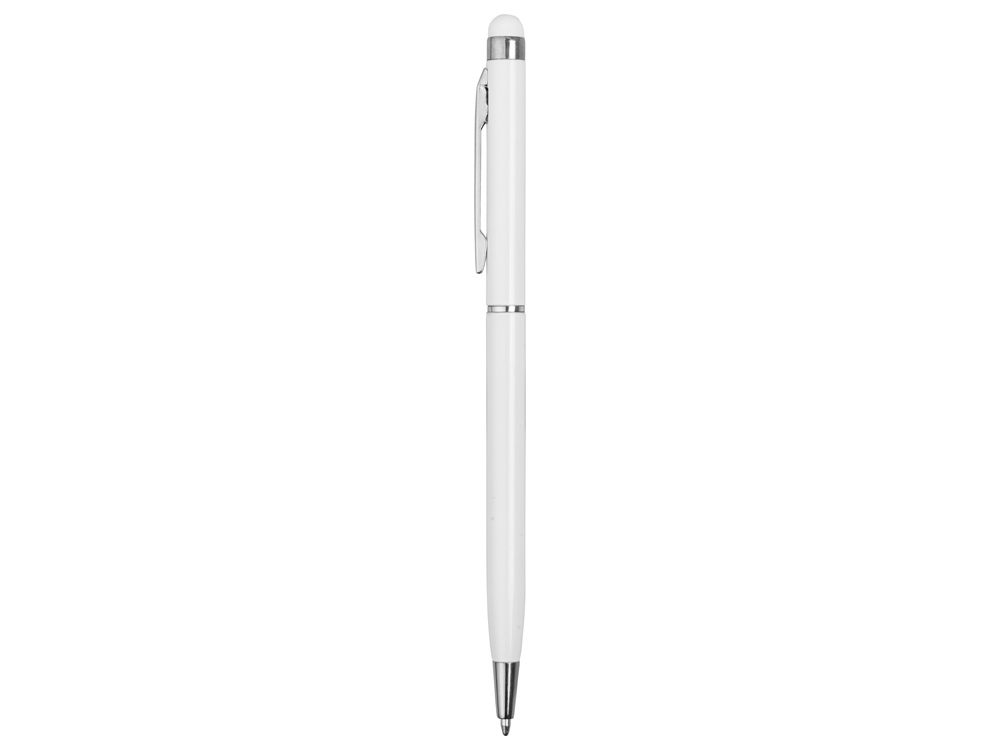 Тонкая металлическая шариковая ручка с поворотным механизмом и стилусом. Функциональный и стильный аксессуар станет отличным подарком.
