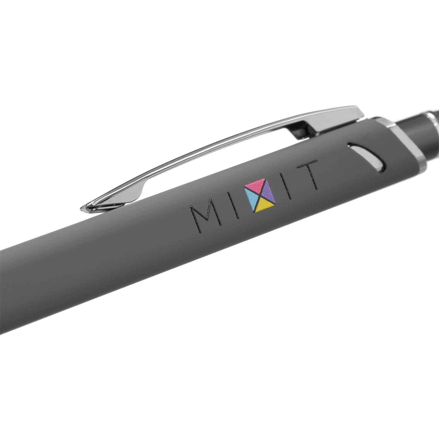 Ручка необычной формы – четыре грани со скругленными углами, благодаря чему ручку удобно держать в руке при письме. Корпус из алюминия с покрытием soft-touch. Стилус в цвет корпуса.