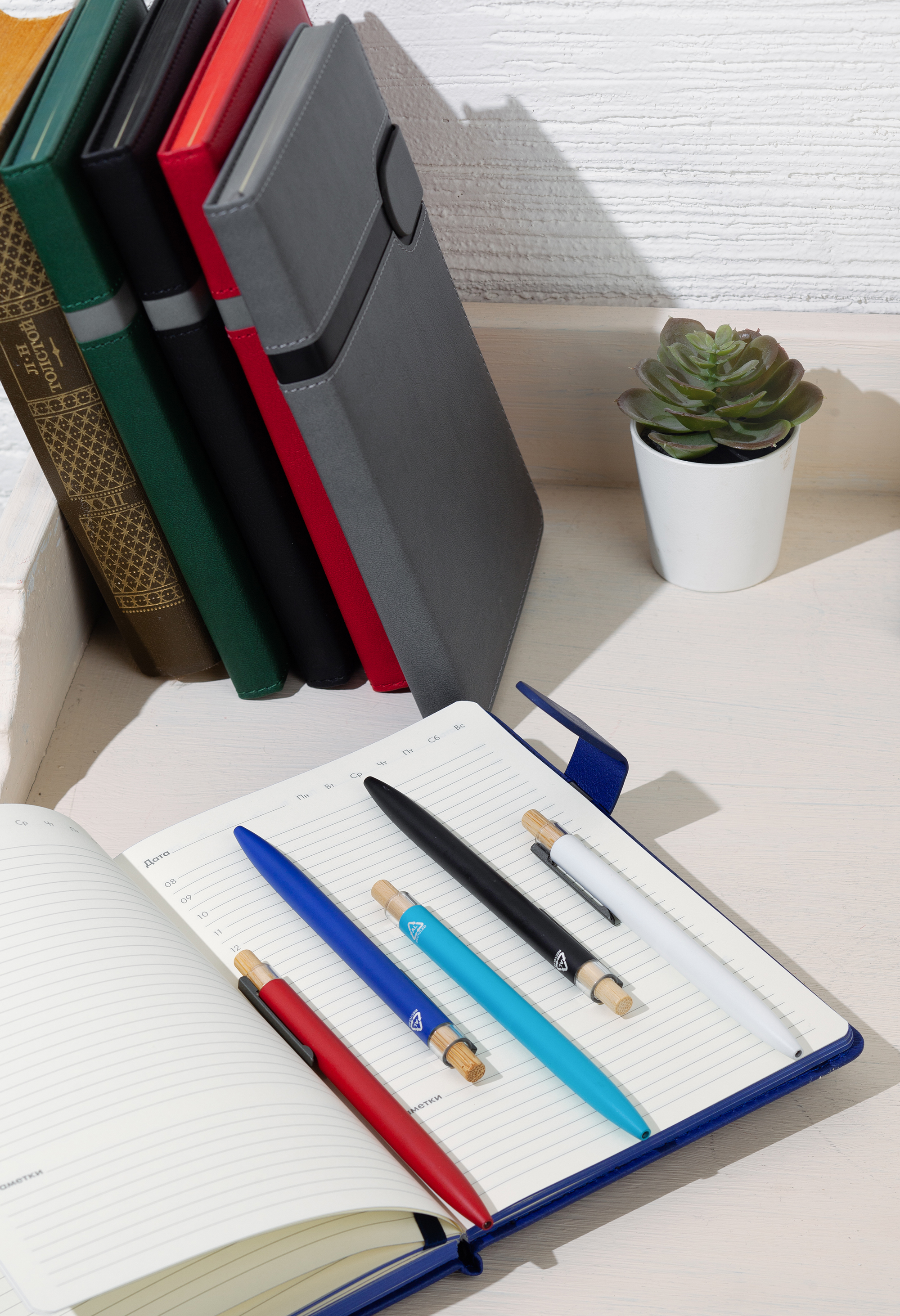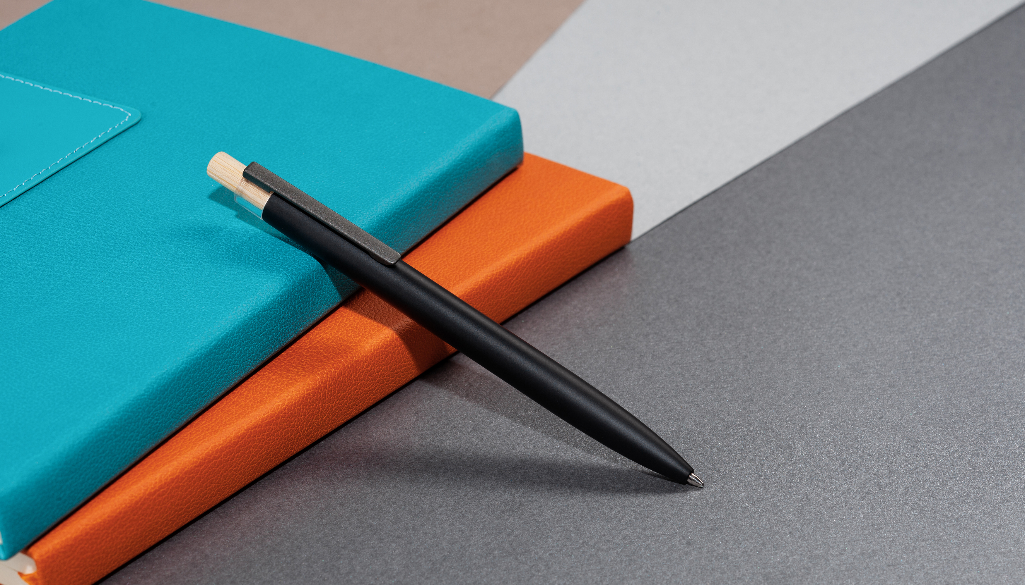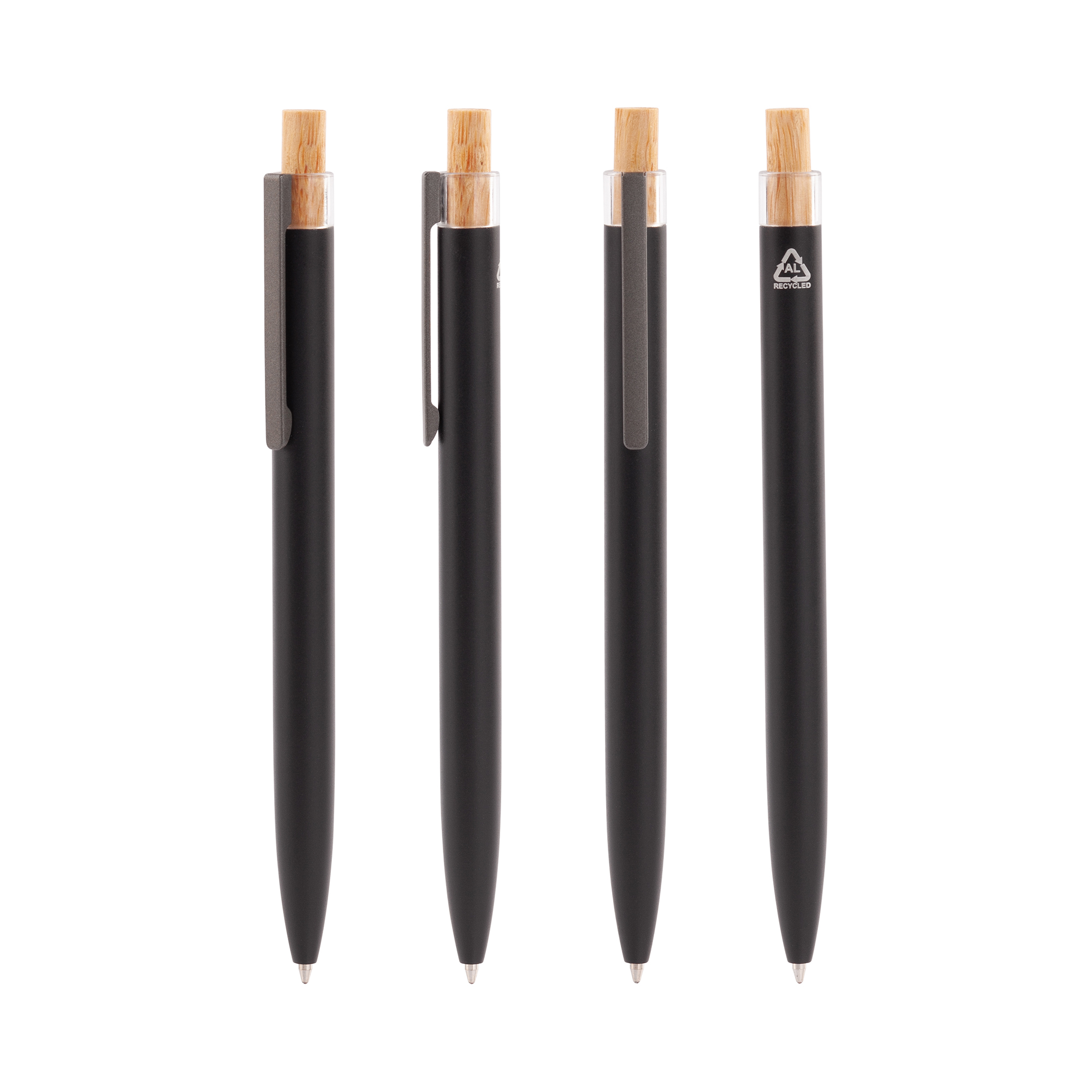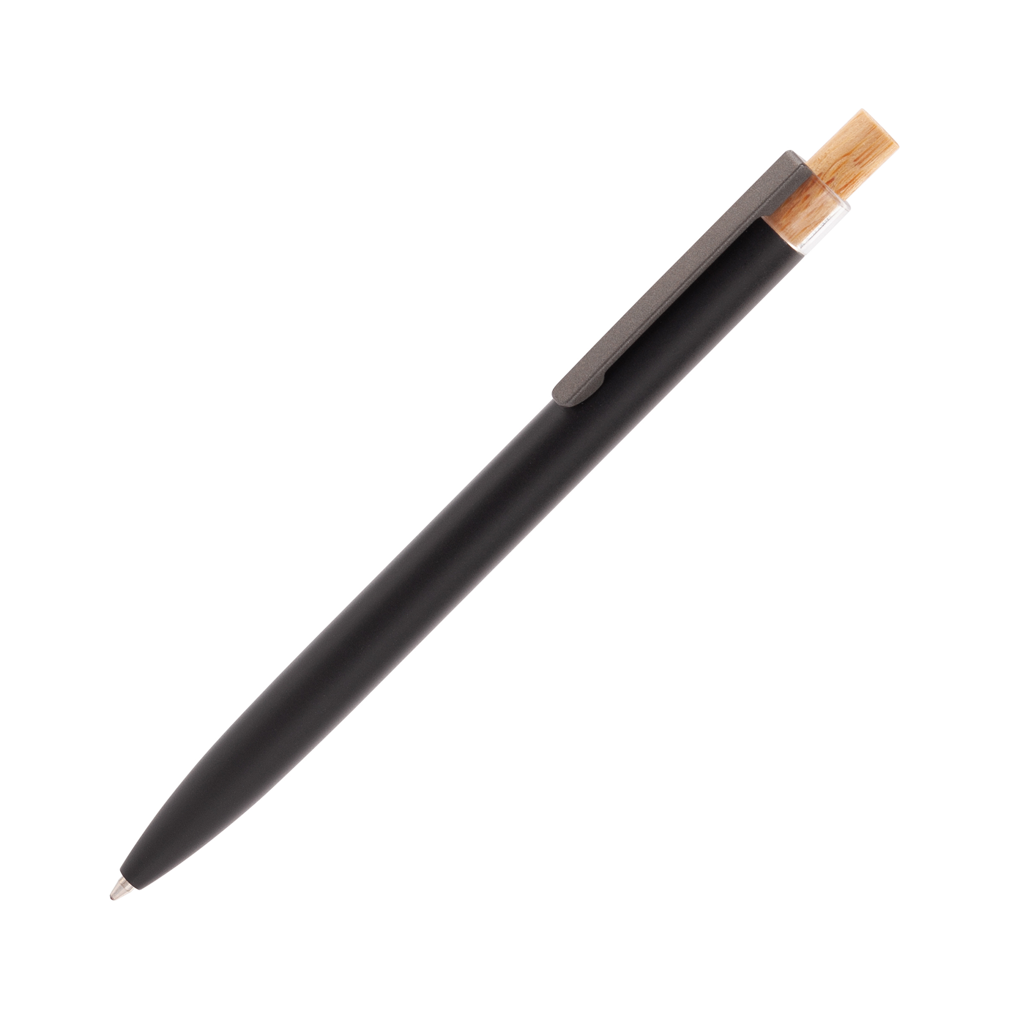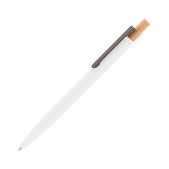 Трендовая эко-ручка, изготовленная из переработанных алюминия и пластика, с кнопкой из бамбука.