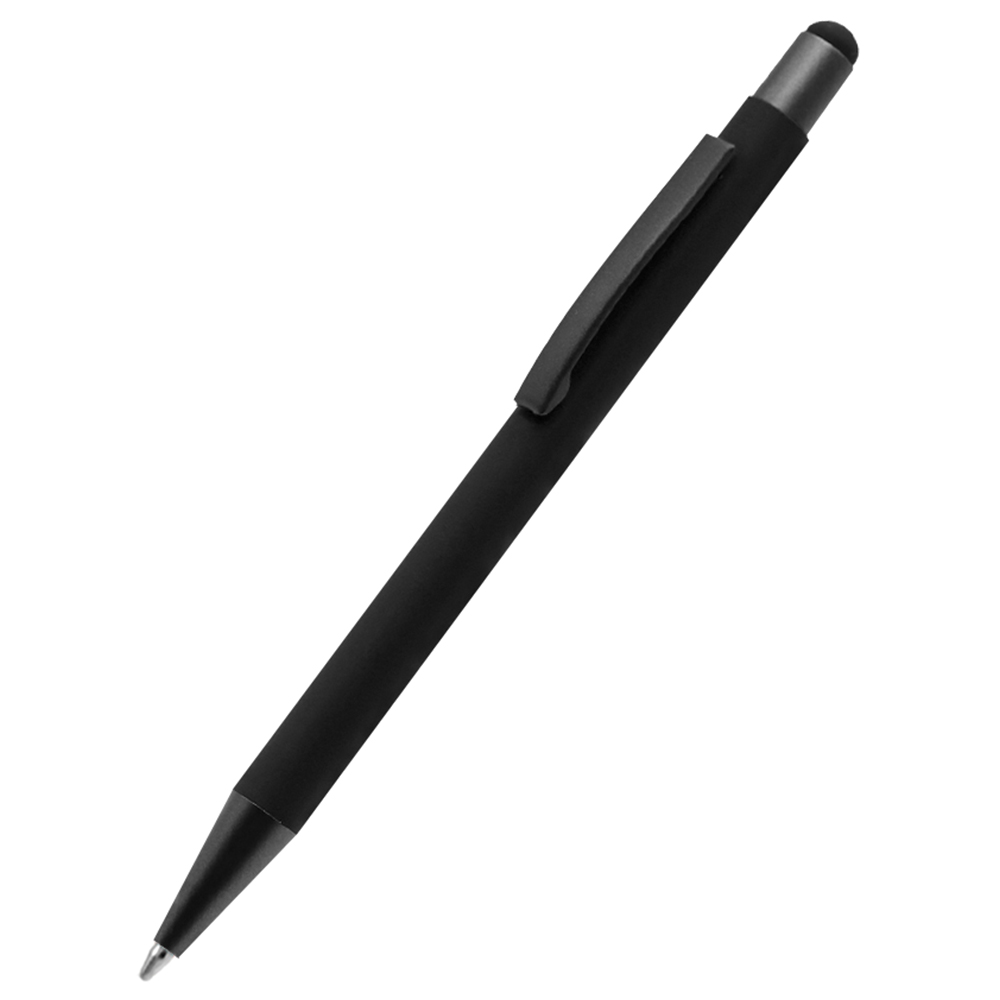 Бархатистая на ощупь ручка Story сотф-тач сделана из металла. Синие чернила, имеет стилус для взаимодействия с портативными устройствами. Толщина пишущего узла 1 мм, длина письма рассчитана на 700 м. Цвет по PANTONE® (максимально приближен): 186 C.