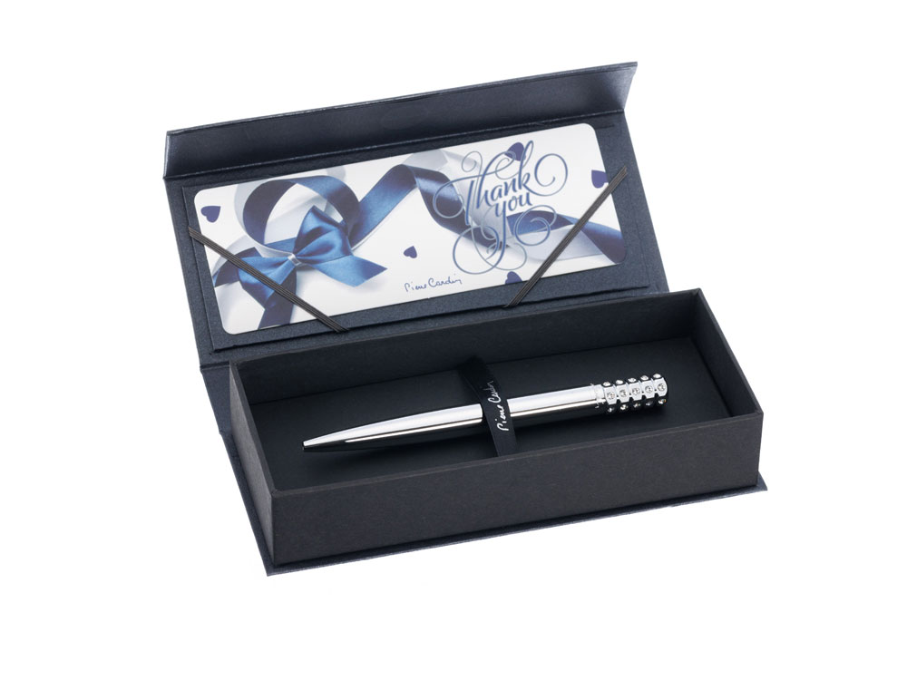 • Металлический шариковый стержень с логотипом Pierre Cardin на корпусе с чернилами синего цвета;