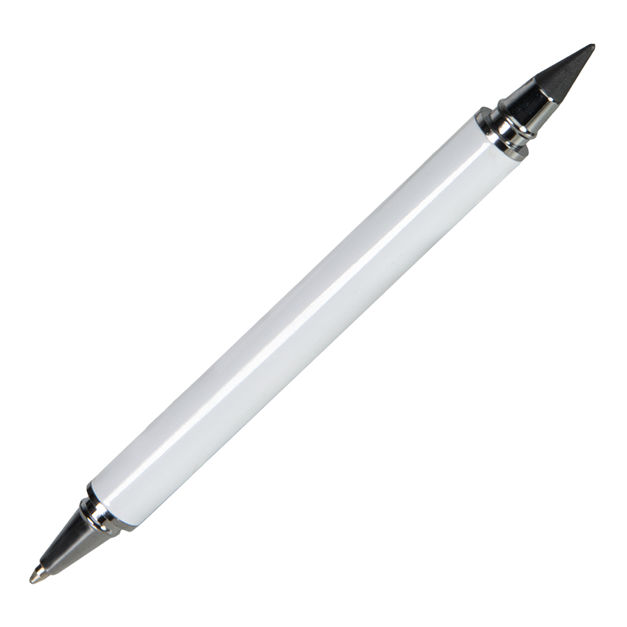 Функциональная модель 2 в 1. С одной стороны - это ручка, а с другой - вечный карандаш. Идеальный выбор рациональных людейкак для промо мероприятия, так и в качестве бизнес подарка. Так как гораздо выгоднее приобрести один пишущий инструмент, в котором будет и ручка, и вечный карандаш, нежели покупать их по отдельности.