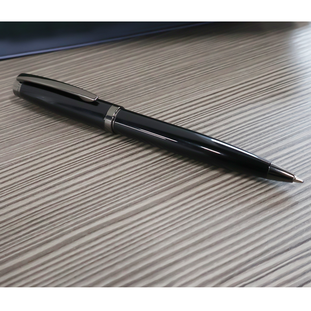 Наша Бетти — подарок для любителей более увесистых и солидных форм. Общий вес ручки — 33 грамма! У нашей красотки поворотный механизм, покрытый глянцем корпус из нержавеющей стали, стержень Паркер 0,7 мм с синими чернилами. Элементы ручки: клип, кольцо и дюбка покрыты ган-метал краской. Ручку приятно держать в руке и демонстрировать публике.