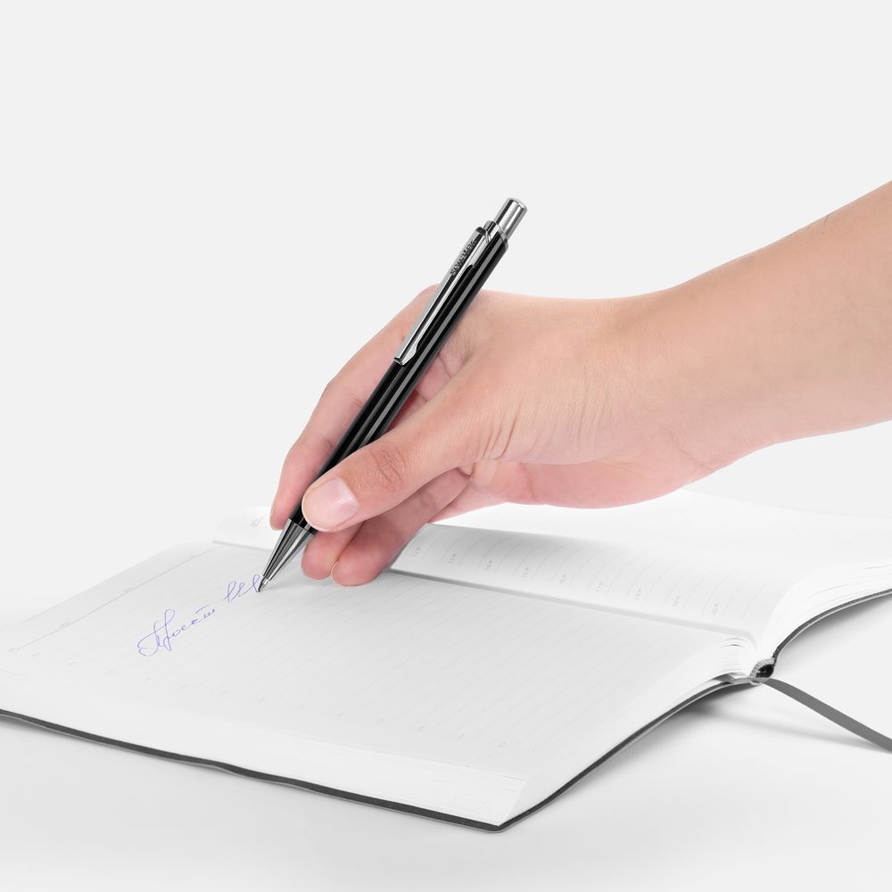 Шариковая ручка в лакированном корпусе с хромированными деталями.