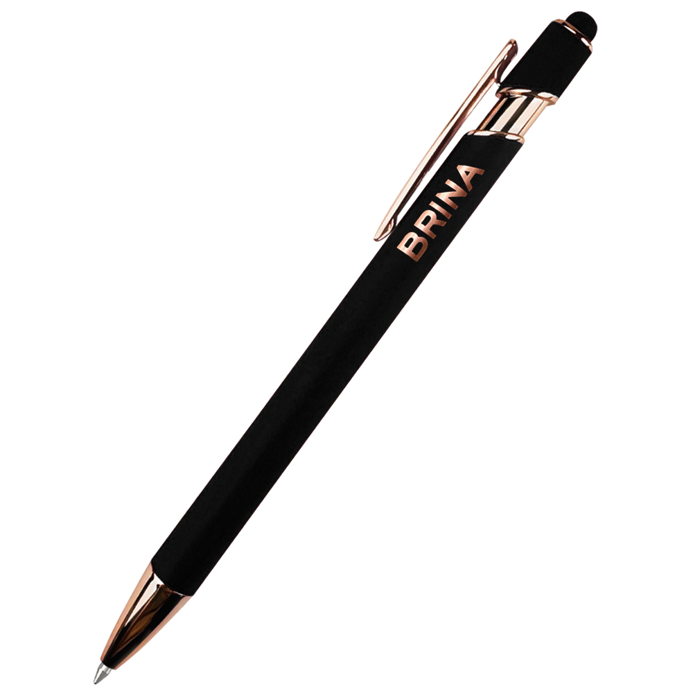 Brina — ручка, в которой холодный блеск металла встречается с тёплым сиянием розового золота. Идеальный баланс эстетики и функциональности. Корпус из прочного металла с покрытием розовое золото — это заявление о безупречном вкусе, олицетворяющем утончённую силу.