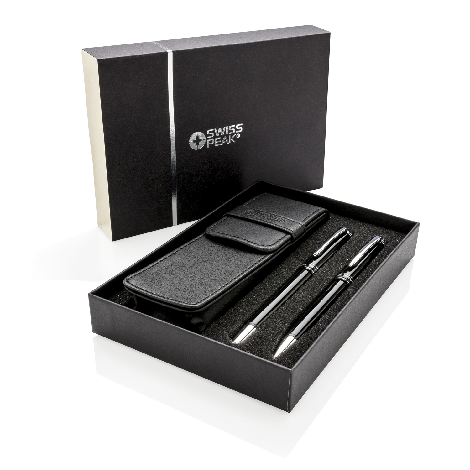 Набор ручек Swiss Peak executive включает в себя ручку-роллер из латуни со стилусом и шариковую ручку с логотипом Swiss Peak. Синие чернила. Поставляет в подарочной коробке, в комплекте идет стильный чехол.