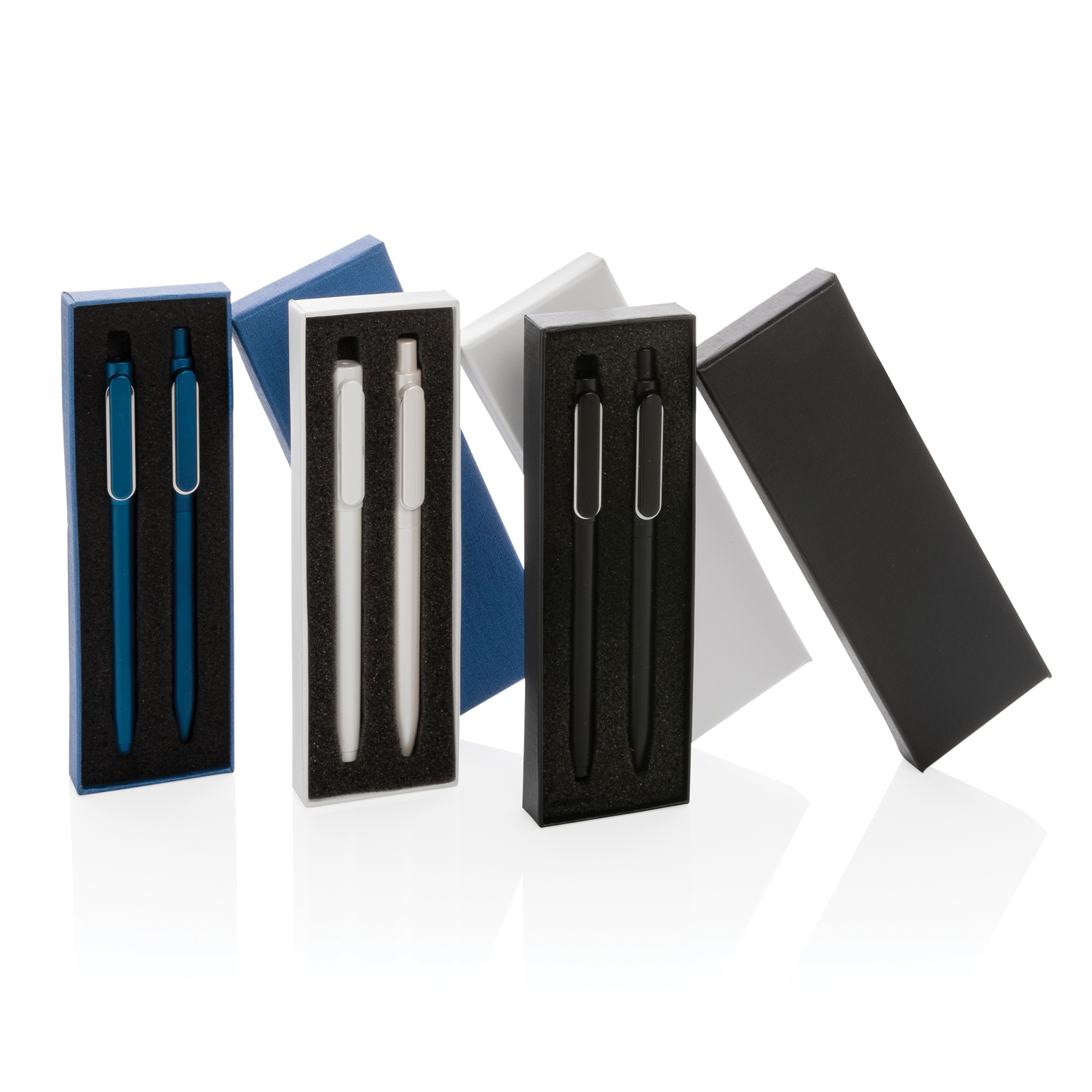 Вы легко узнаете ручки X6 по великолепной металлической отделке клипа. В наборе идут две модели: ручка с нажимным механизмом и с колпачком. Классическая ручка X6 с нажимным механизмом заправлена немецкими чернилами Dokumental® синего цвета, заявленная длина письма 1200 м, шарик TC для гладкого скольжения. Ручка X6 с колпачком поставляется с чернилами Ultra Glide (чернила низкой вязкости) для еще более плавного письма. Эта модель способна прочертить линию до 800 м. Набор поставляется в подарочной коробке в тон корпуса ручек.