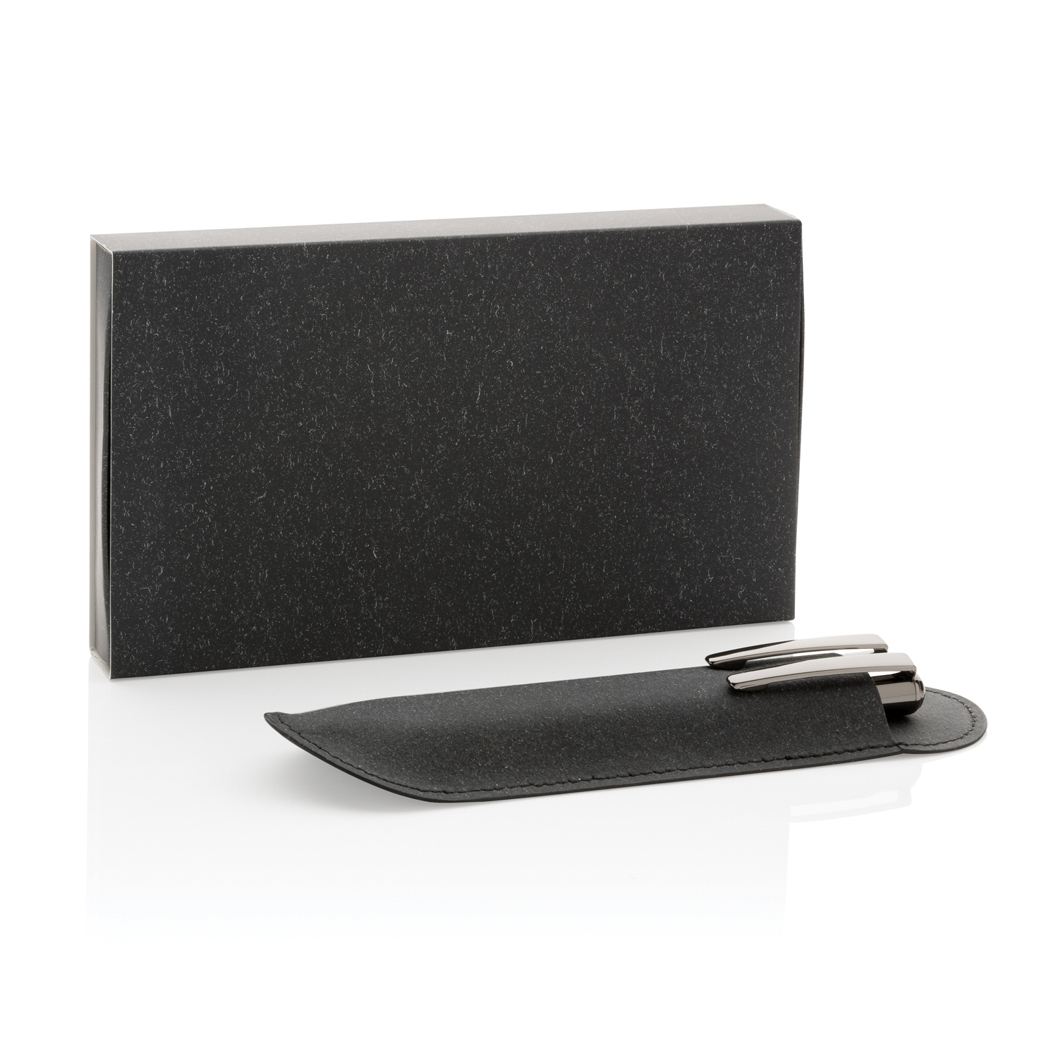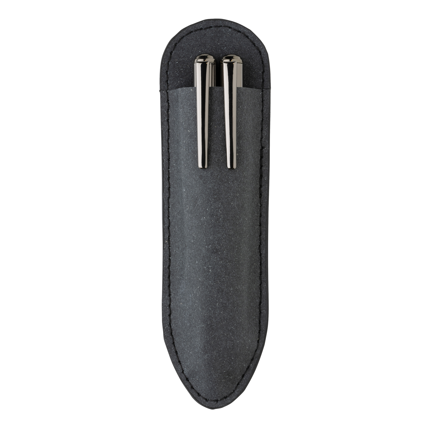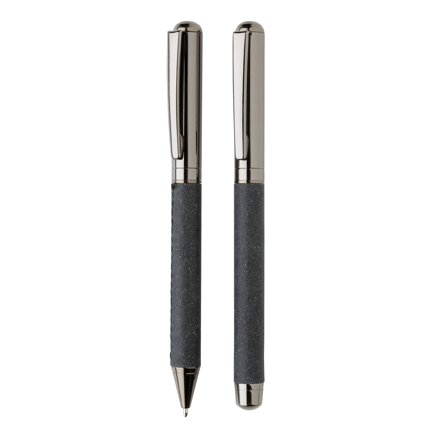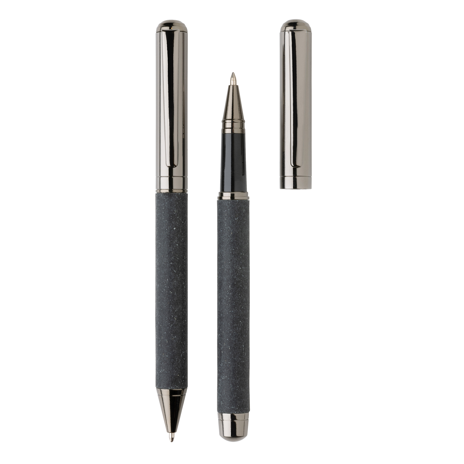 Набор из шариковой ручки и роллера декорирован элементами из переработанной кожи и поставляется в чехле в тон. Синих чернил Dokumental хватит надолго! Длина письма шариковой ручки — 1200 м, роллера — 400 м. Набор поставляется в подарочной коробке с принтом под переработанную кожу.