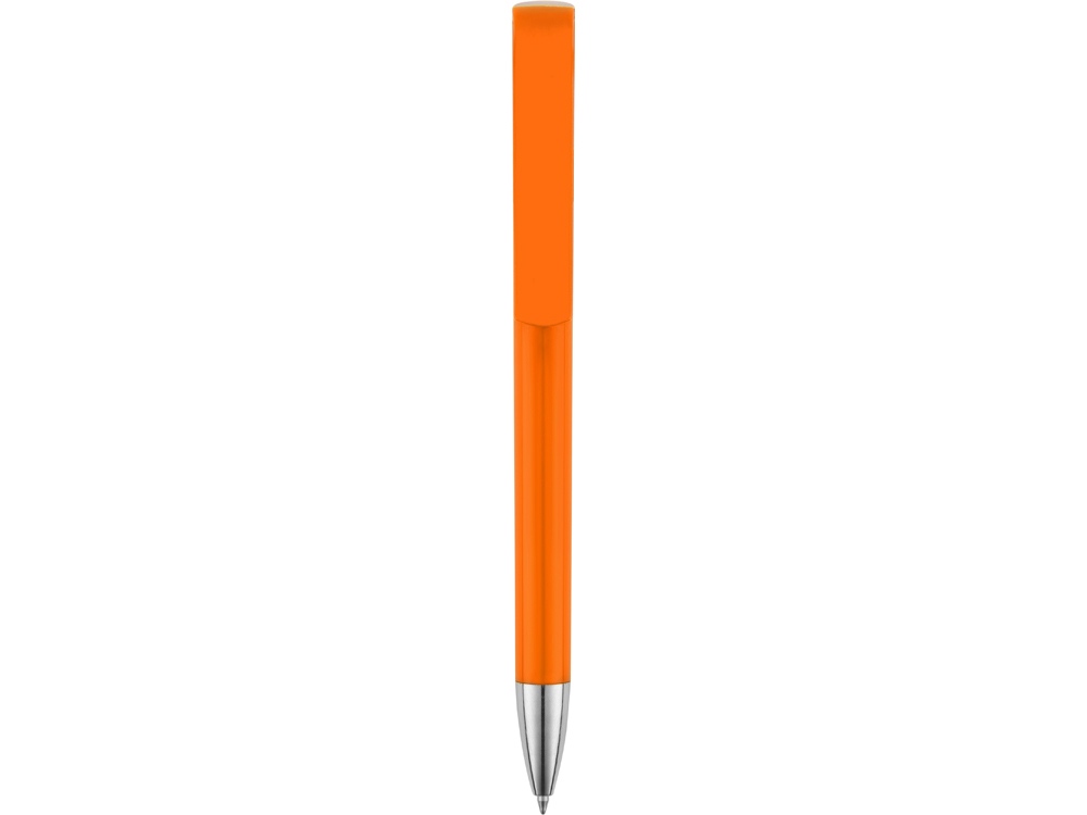 Пластиковая ручка с цветным корпусом и серебристым носиком привлечет внимание своим необычным дизайном: при нажатии на кнопку двигается только часть клипа, а вторая – остается на месте. Из шести расцветок можно выбрать ту, что наилучшим образом подойдет к вашим фирменным цветам.