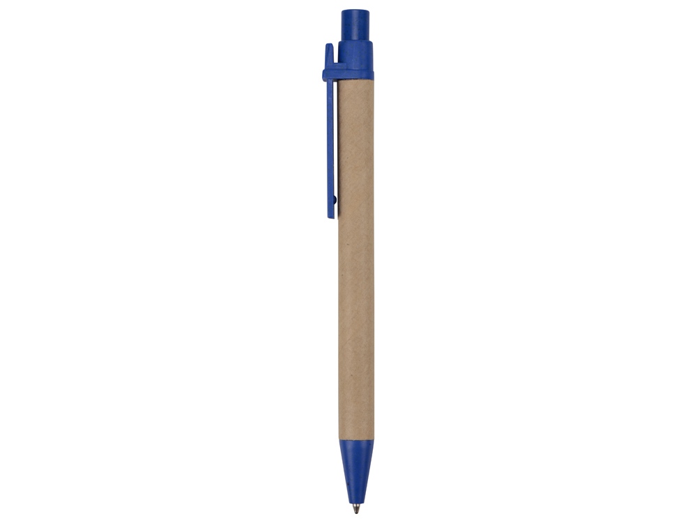 Шариковая ручка с нажимным механизмом. Удобный корпус сделан из переработанного картона. Клип, кнопка и носик ручки на 50% состоят из пшеничной соломы, на 50% — из переработанного пластика. Настоящая находка для тех, кто предпочитает использовать изделия из биоразлагаемых материалов и заботится о сохранности окружающей среды.