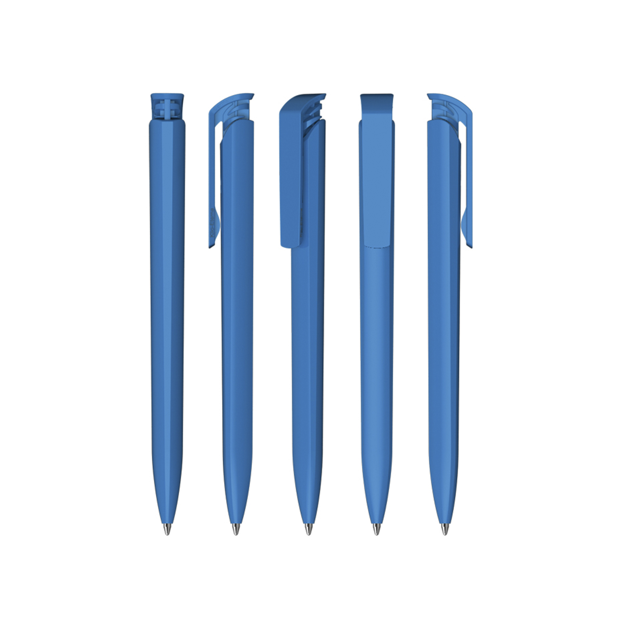 Необычная шестигранная ручка удобно ложится в руку. Корпус с напылением soft touch дополнен глянцевым клипом. Плоские грани корпуса и массивный глянцевый клип превосходно дополнит нанесение тампопечатью и объемной УФ-печатью.