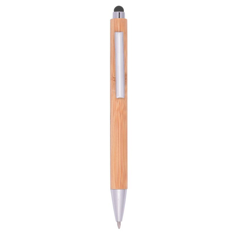 Шариковая ручка TOUCHY: с бамбуковым покрытием, механизмом нажатия, цветным сенсорным наконечником для управления смартфонами и планшетами, с синей пастой.