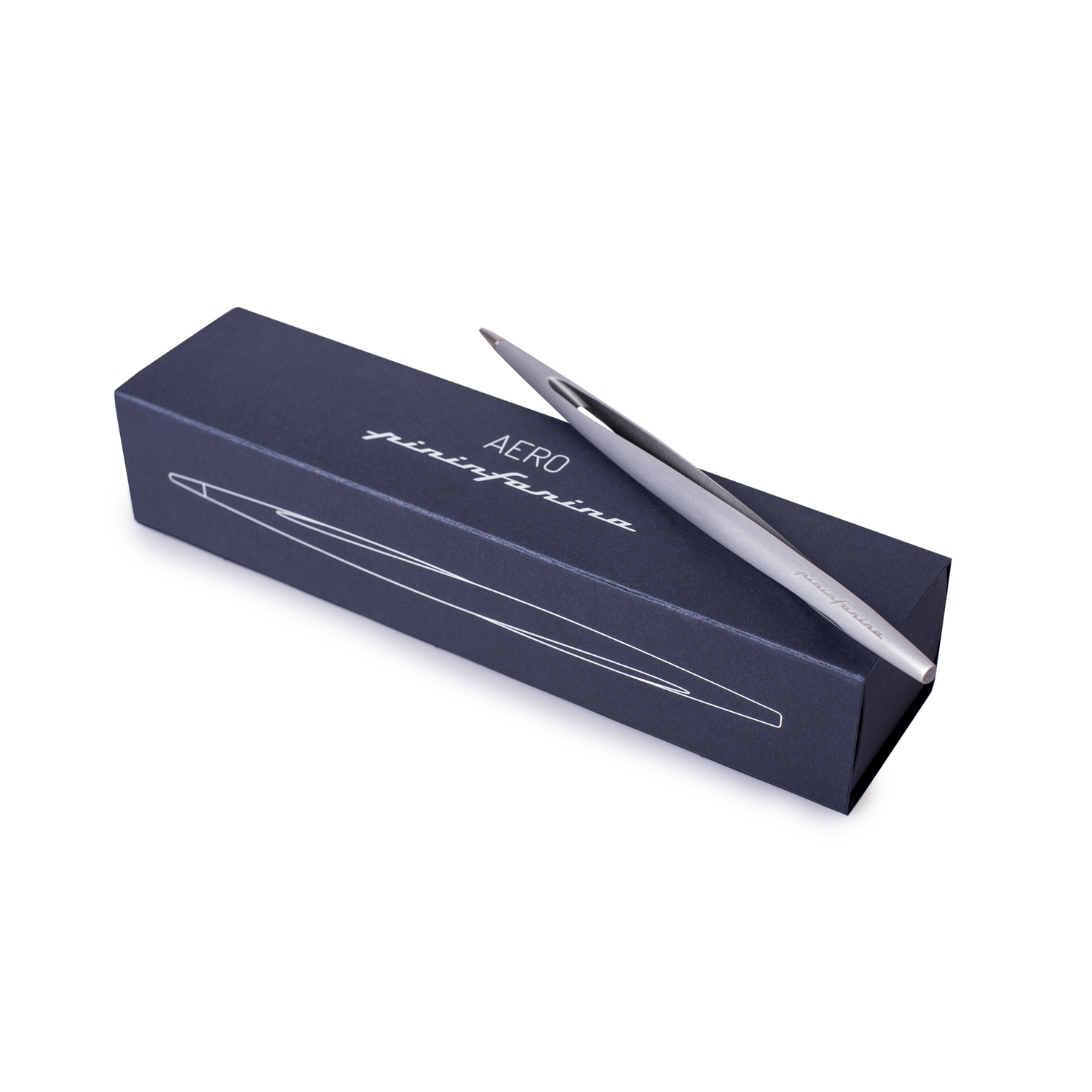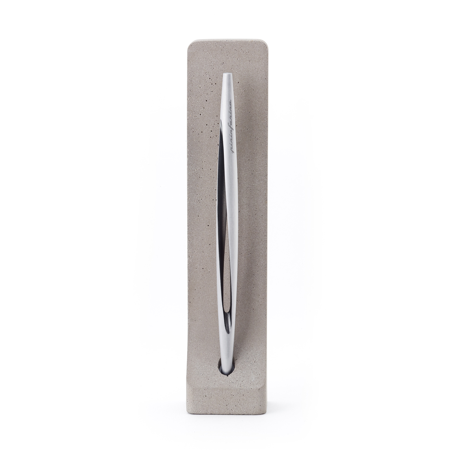 Вдохновленные мощью, формой и красотой воздушных потоков, дизайнеры концерна Pininfarina создали новую модель вечной ручки Pininfarina Aero. Ее элегантная форма напоминает знак бесконечности, корпус ручки очень легкий - всего 17 гр при длине ручки 16 мм - выполнен из аэрокосмического алюминия и оснащен наконечником Ethergraf, который изготовлен из сплава металлов по запатентованной технологии. Наконечник не содержит свинец и алюминий, производится вручную итальянскими мастерами и практически не расходуется за десятилетия использования. При соприкосновении с поверхностью бумаги, происходит химическая реакция и наконечник оставляет серебристый след, который напоминает цвет графитового карандаша, но обладает большей стойкостью. Идеально пишет на каменной бумаге. Внутри "воздушной петли" на корпусе ручки имеются контрастные элементы красного цвета. Легкая, прочная, изысканная ручка контрастирует с тяжелой бетонной подставкой, давая понять, что даже несовместимые на первый взгляд вещи могут существовать в полной гармонии друг с другом. Эта бетонная подставка будет необычным аксессуаром на письменном столе, служа вертикальной настольной подставкой для ручки. Обладатель премии Red Dot Design Award.
