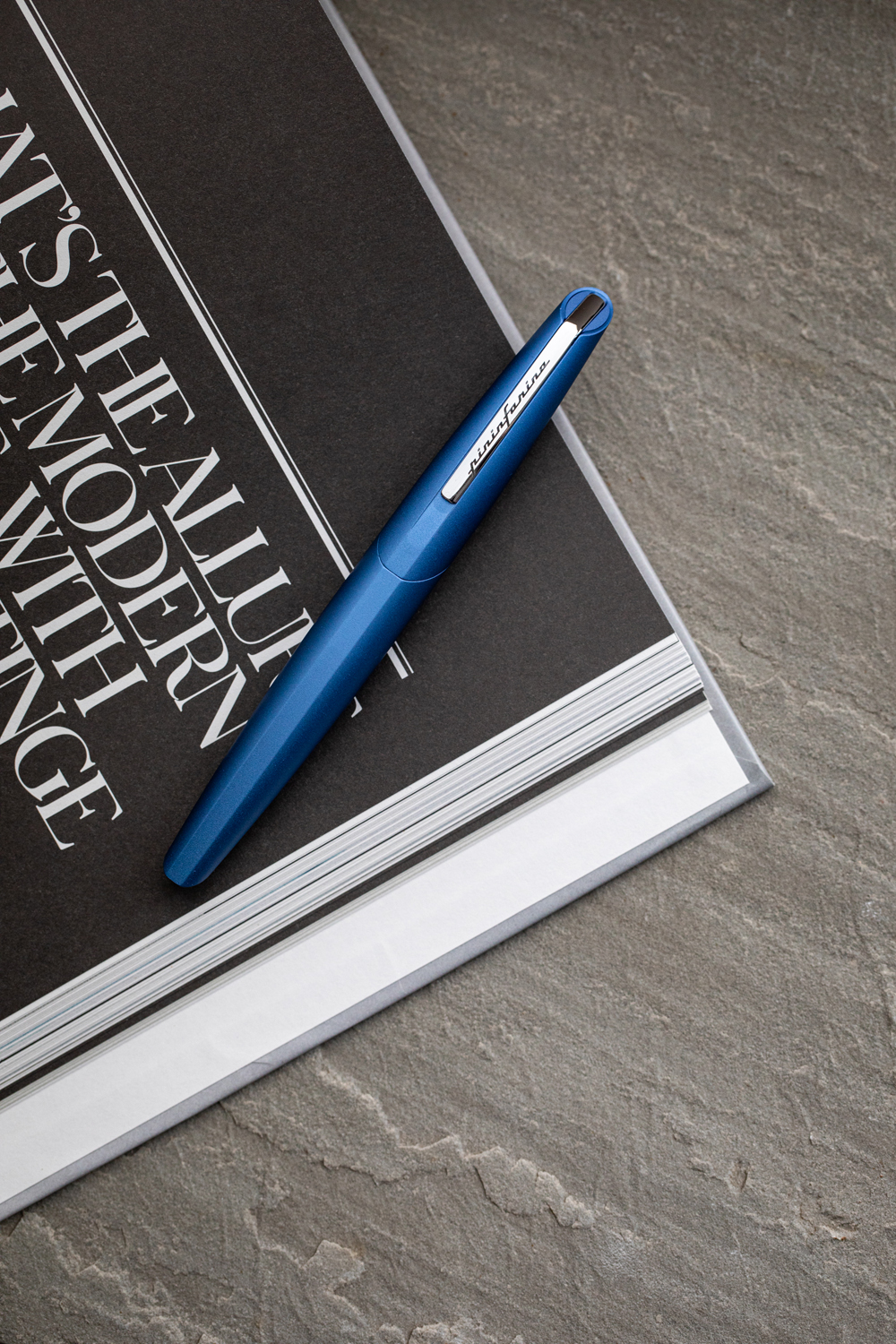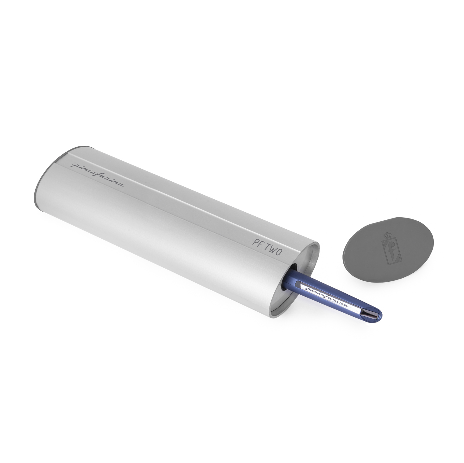 Роллер из коллекции 2021 года PF Two от дизайнеров Pininfarina. Точные геометрические формы и уникальное техническое исполнение ручки превращают ее из пишущего инструмента в совершенный аксессуар. Скошенные линии колпачка. Элегантное сочетание темно-синего матового корпуса и серебристого полированного клипа на колпачке ручки. Корпус ручки выполнен из алюминия, ее длина 15 см, вес 40 гр. Упакована в серебристую округлую подарочную коробку. В ручке используется чернильный стержень Schmidt SRC 5888 M (подходит роллер Sheaffer) с синей пастой.