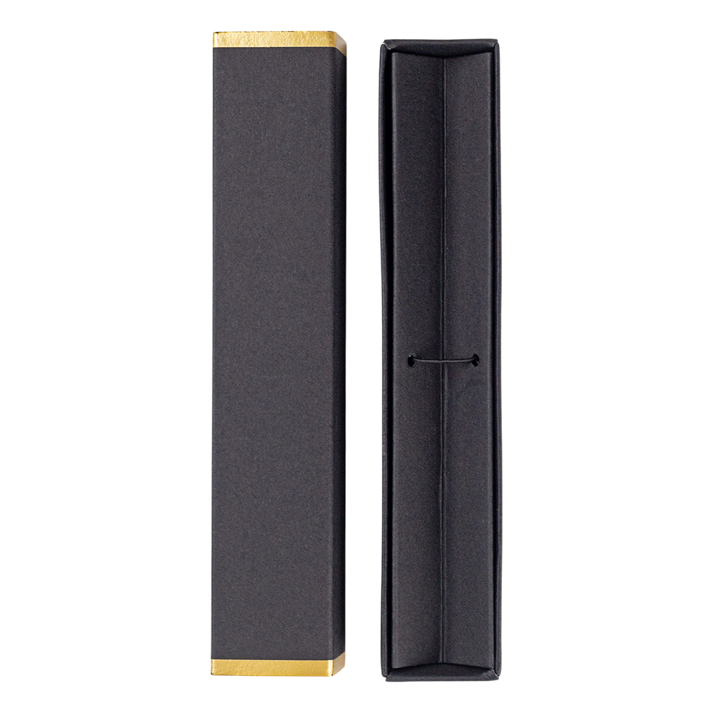 Бумажная коробочка для ручки. Ложемент V-образный с резинкой, фиксирующей ручку. По краям крышки металлизированные декоративные элементы, для красоты. В такой коробочке подаренная ручка будет выглядеть ещё дороже, словно фотомодель в вечернем платье.